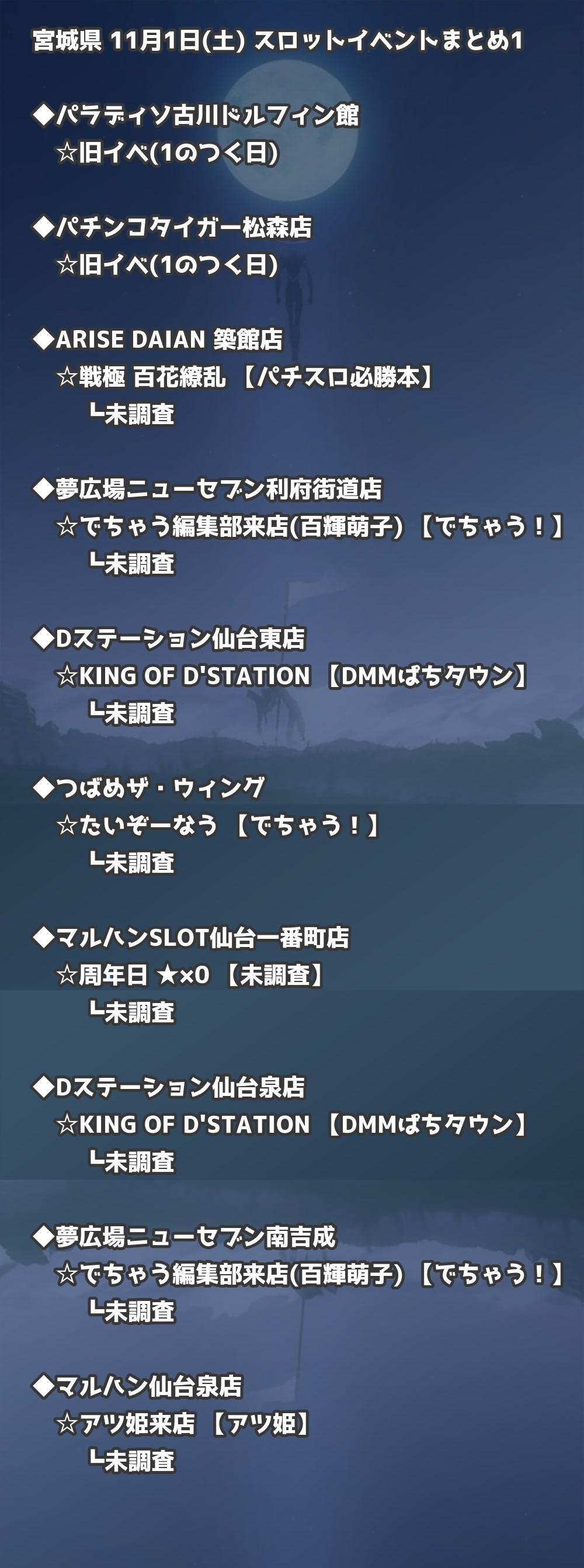 📊 宮城県 11月1日(土) 勝てるパチンコ・スロット取材店舗一覧|おすすめ順