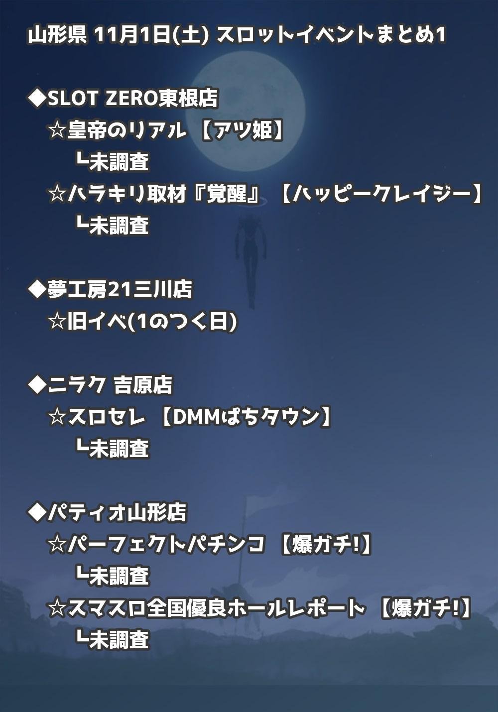 【山形県】11月1日(土) パチンコホールイベント取材まとめ記事です。
