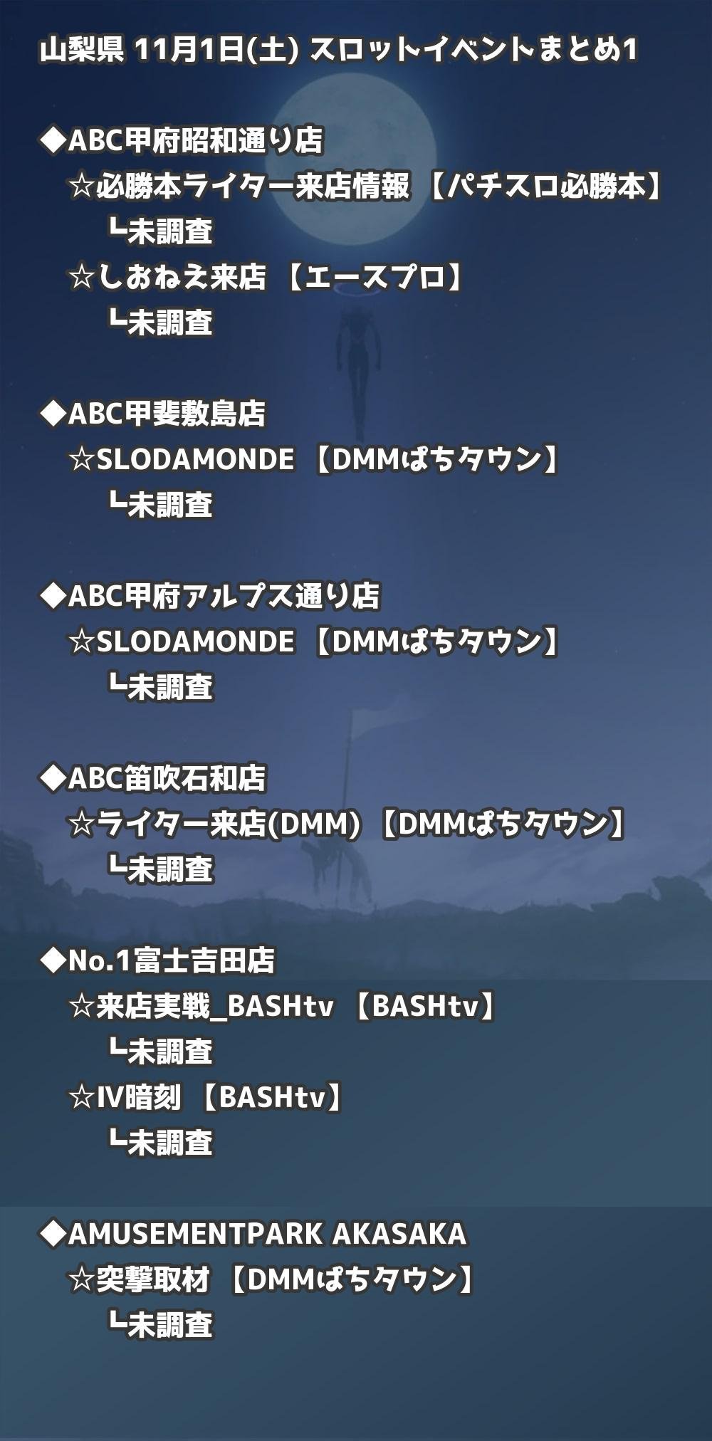 📊 山梨県 11月1日(土) 勝てるパチンコ・スロット取材店舗一覧|おすすめ順