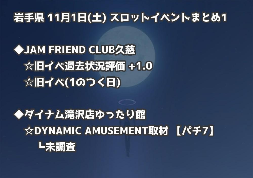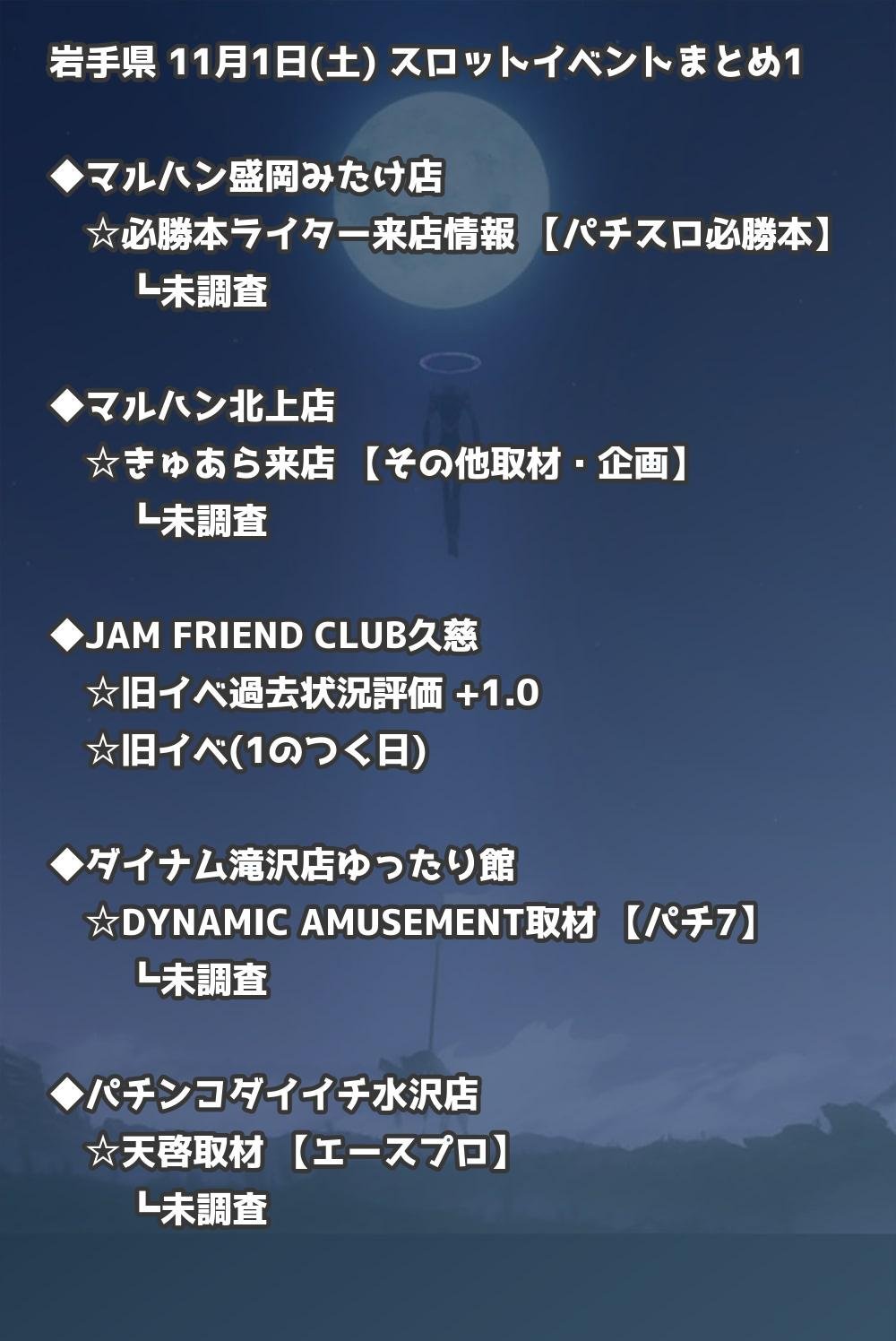 【岩手県】11月1日(土) パチンコホールイベント取材まとめ記事です。