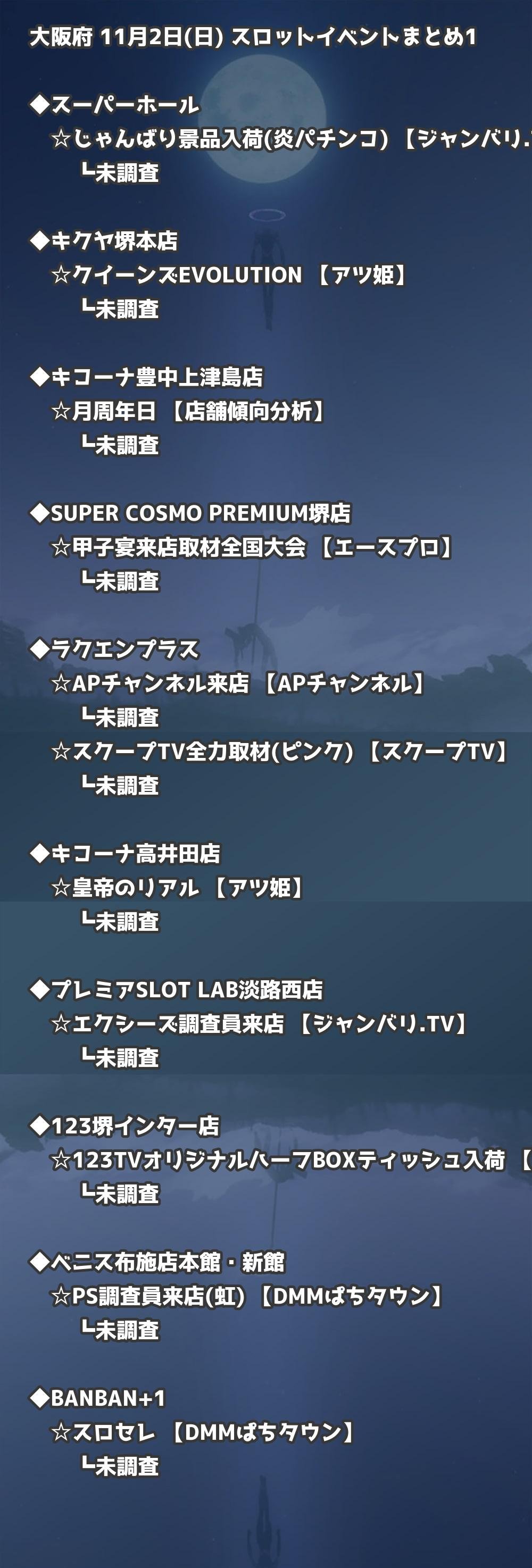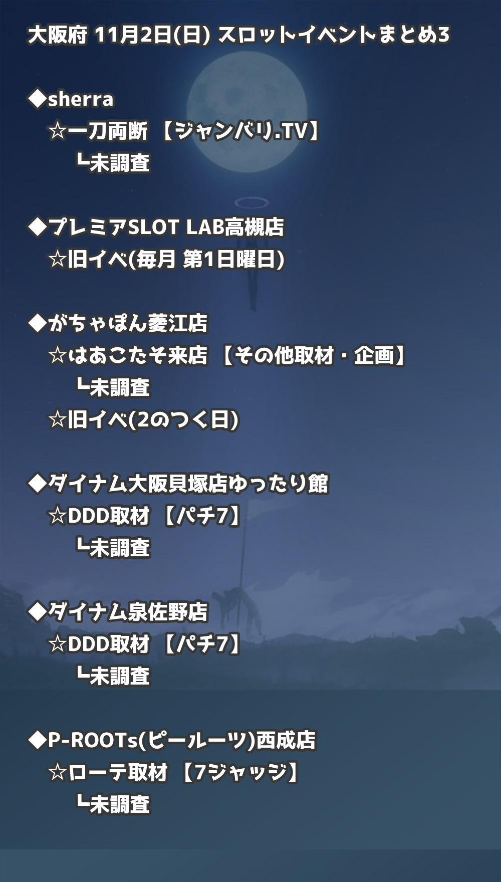 📊 大阪府 11月2日(日) 勝てるパチンコ・スロット取材店舗一覧|おすすめ順