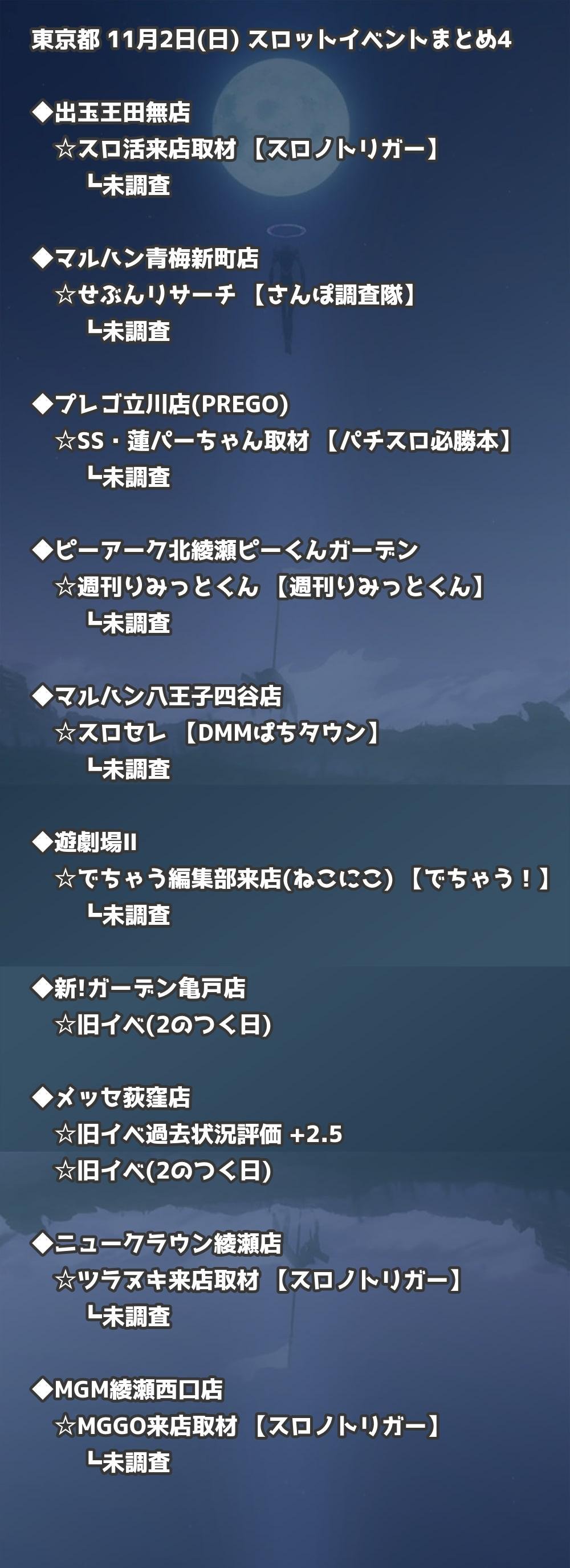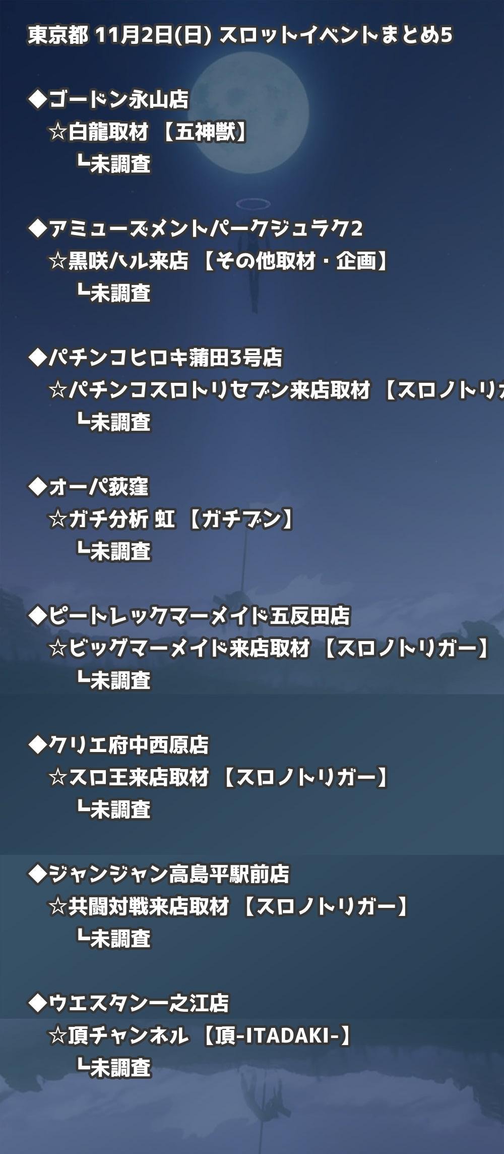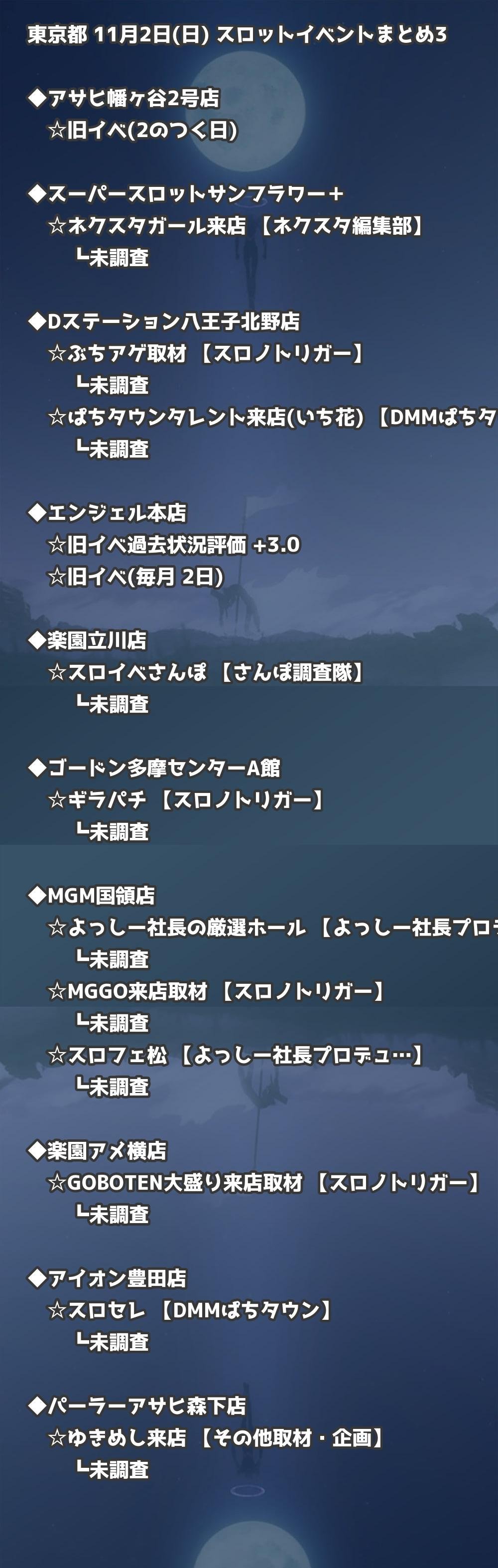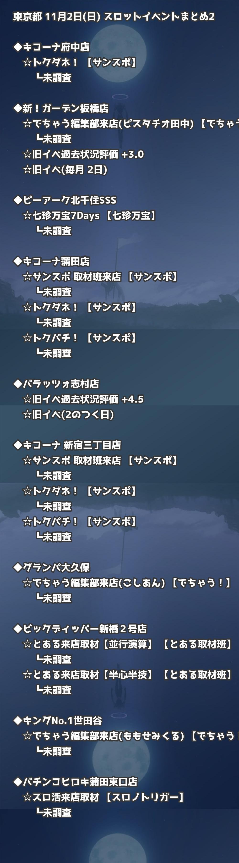 【東京都】11月2日(日) パチンコホールイベント取材まとめ記事です。