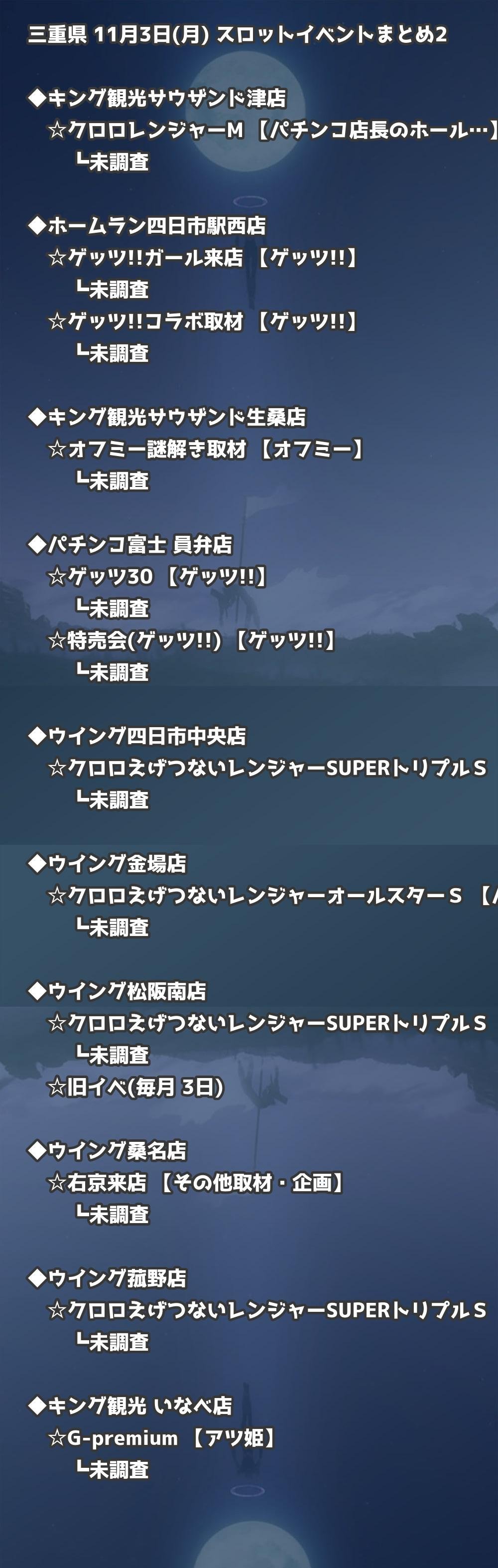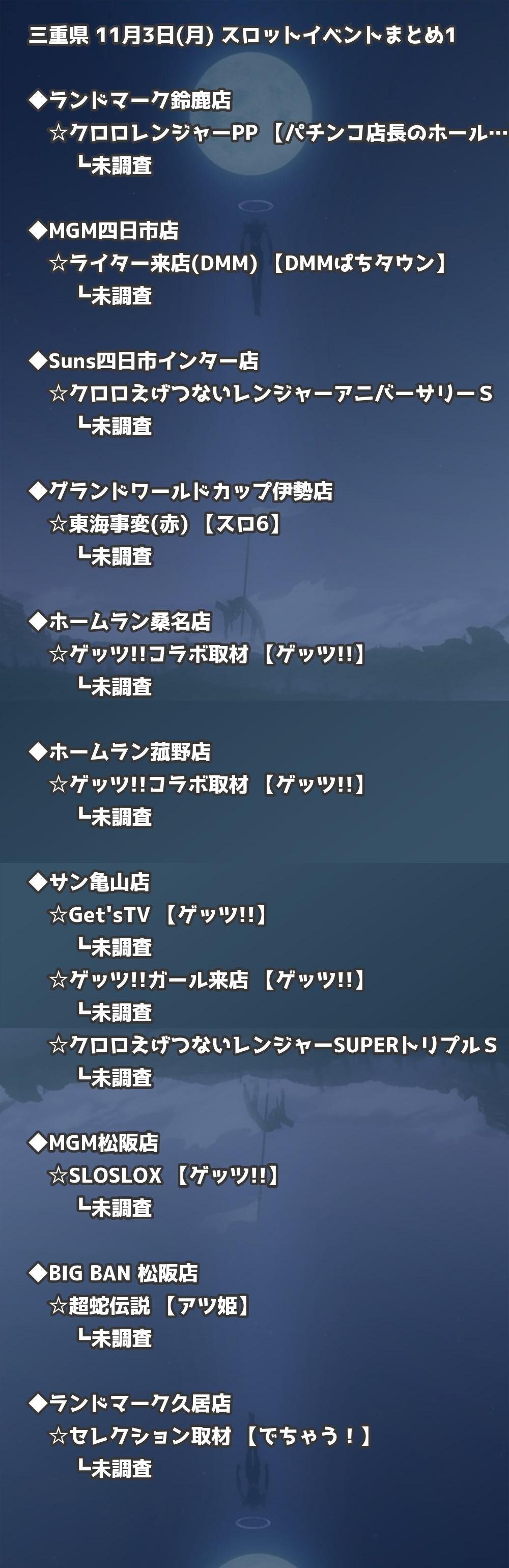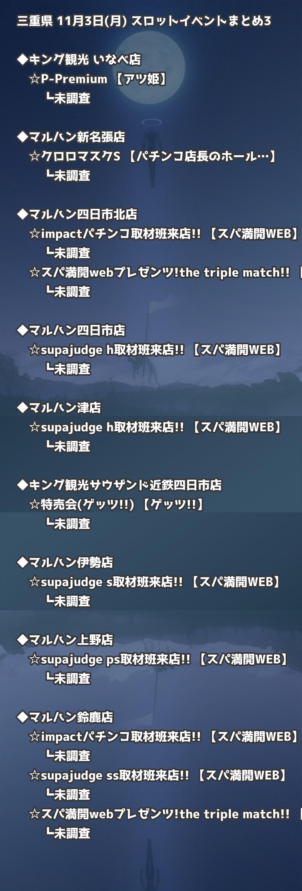 📊 三重県 11月3日(月) 勝てるパチンコ・スロット取材店舗一覧|おすすめ順