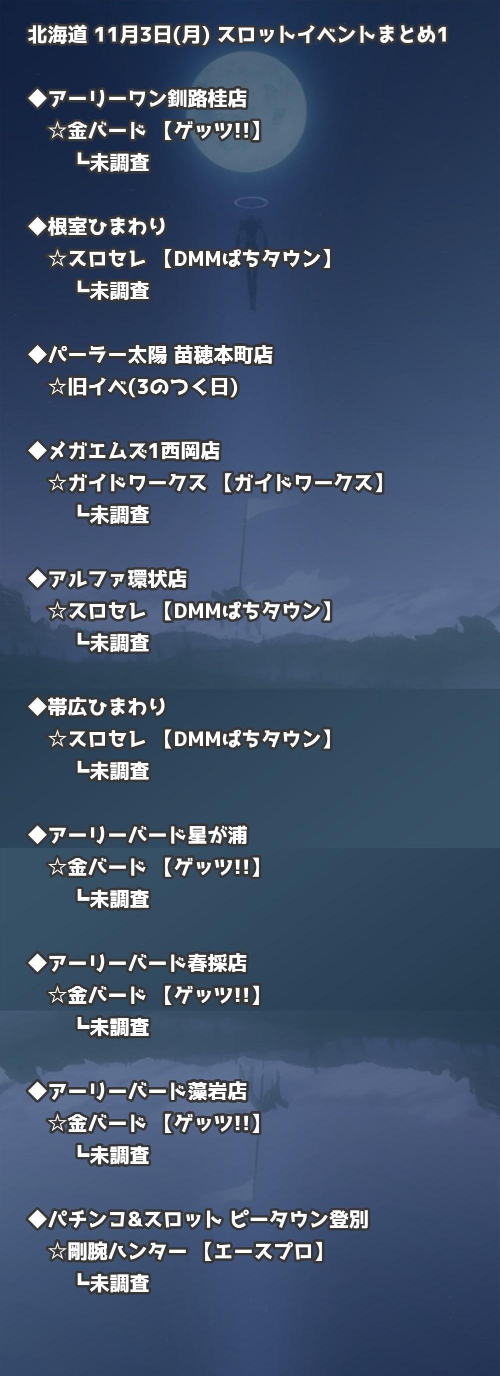 【北海道】11月3日(月) パチンコホールイベント取材まとめ記事です。