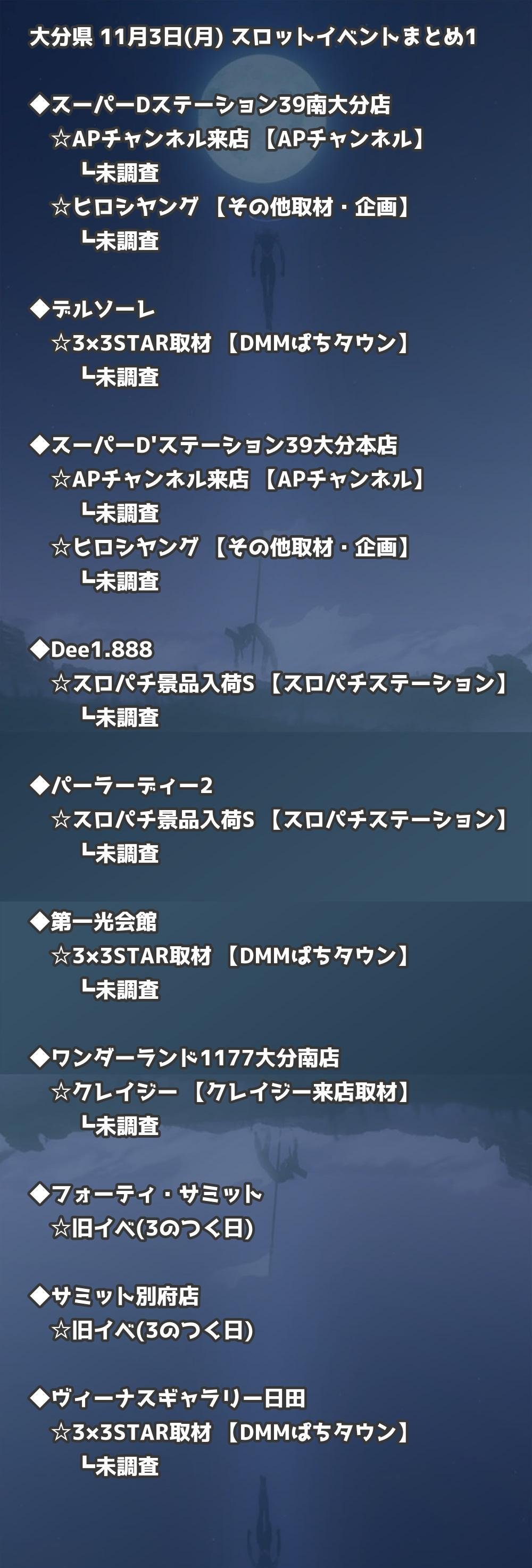📊 大分県 11月3日(月) 勝てるパチンコ・スロット取材店舗一覧|おすすめ順