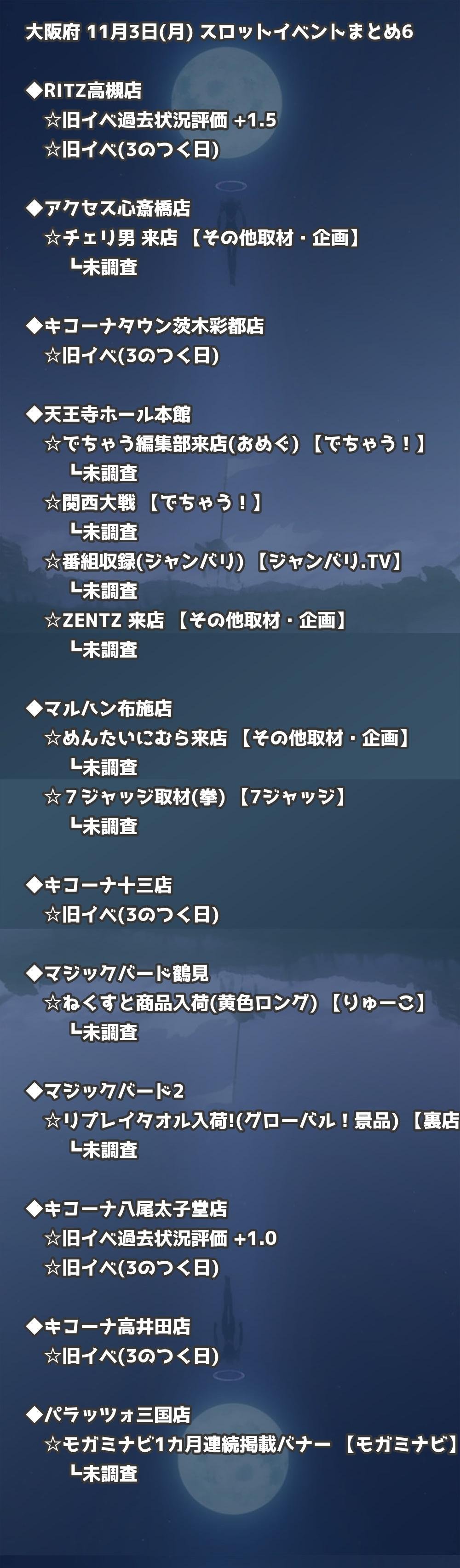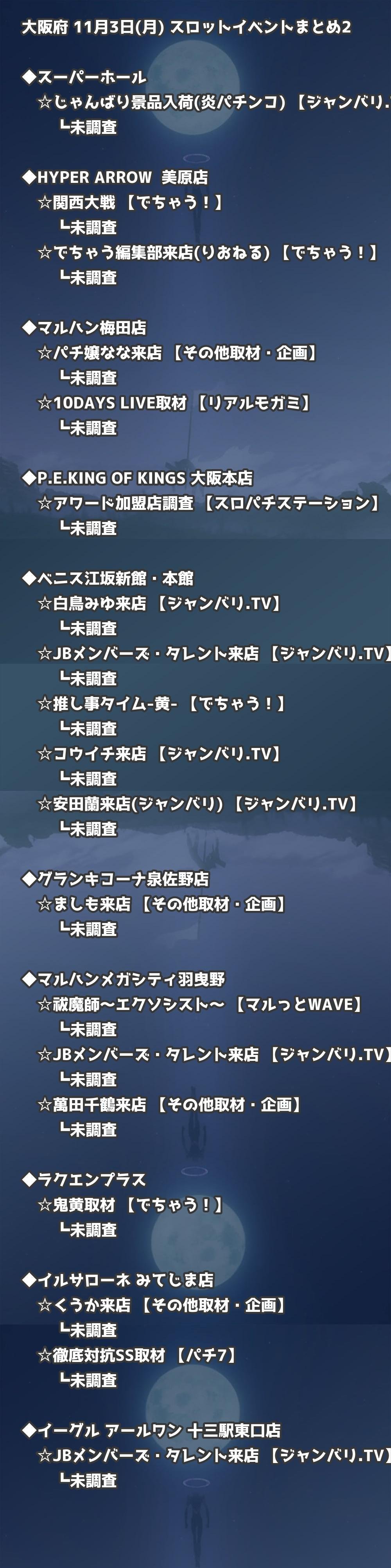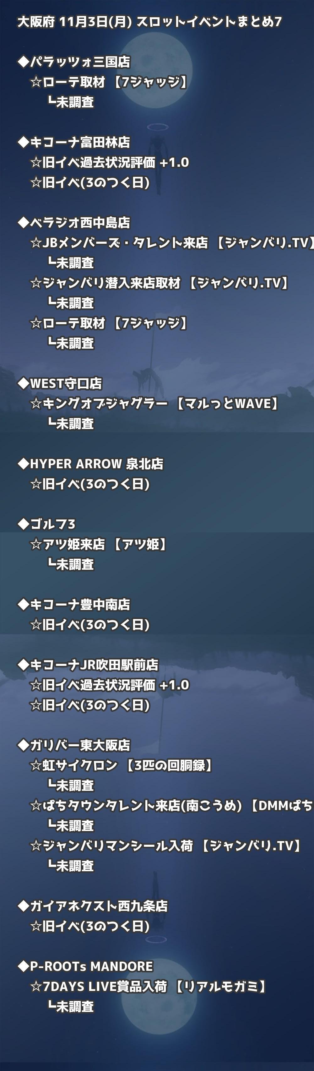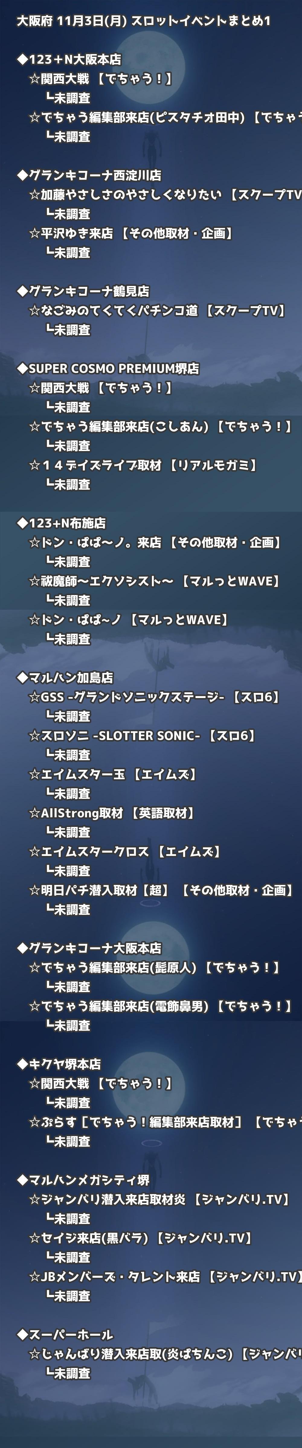 📊 大阪府 11月3日(月) 勝てるパチンコ・スロット取材店舗一覧|おすすめ順