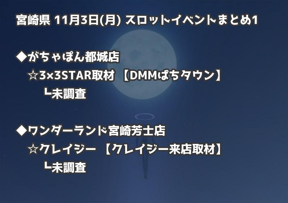 【宮崎県】11月3日(月) パチンコホールイベント取材まとめ記事です。