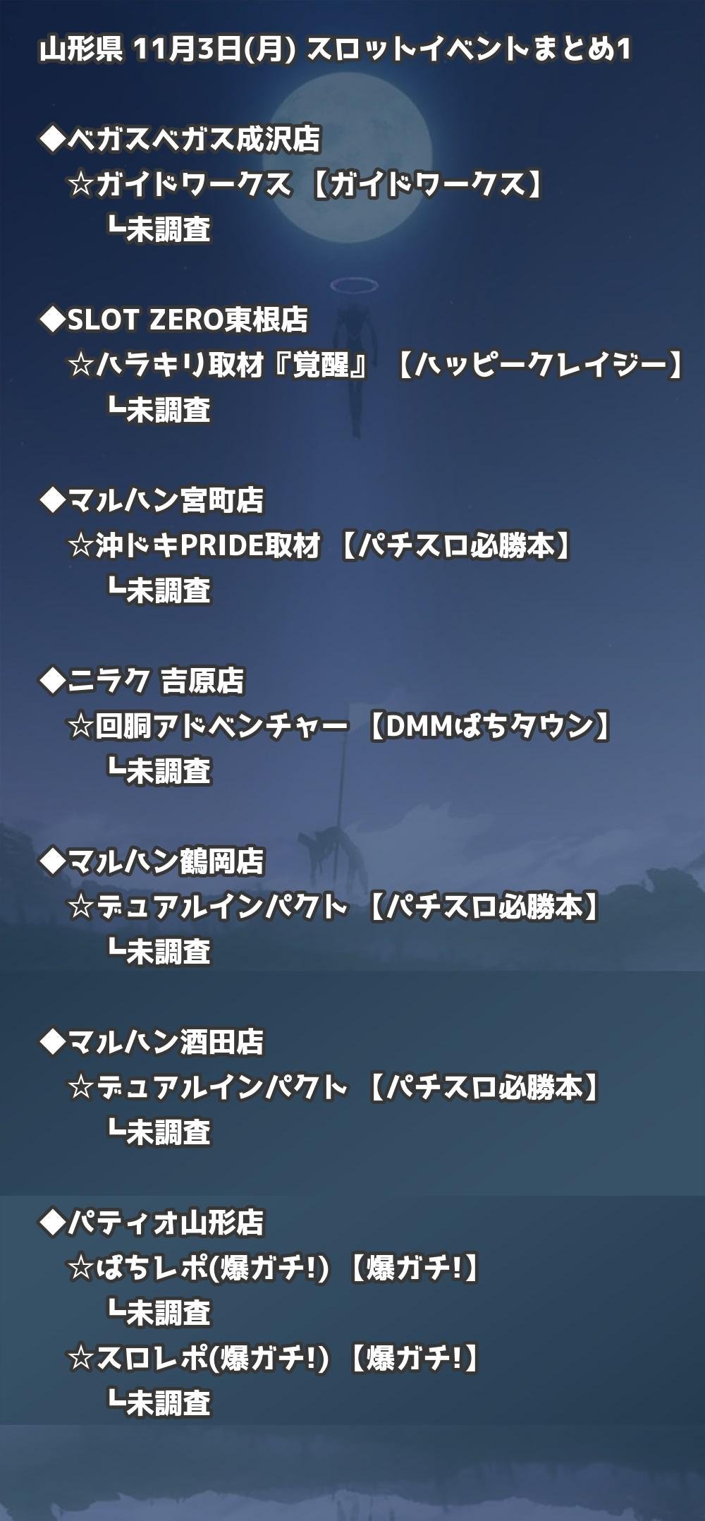 📊 山形県 11月3日(月) 勝てるパチンコ・スロット取材店舗一覧|おすすめ順