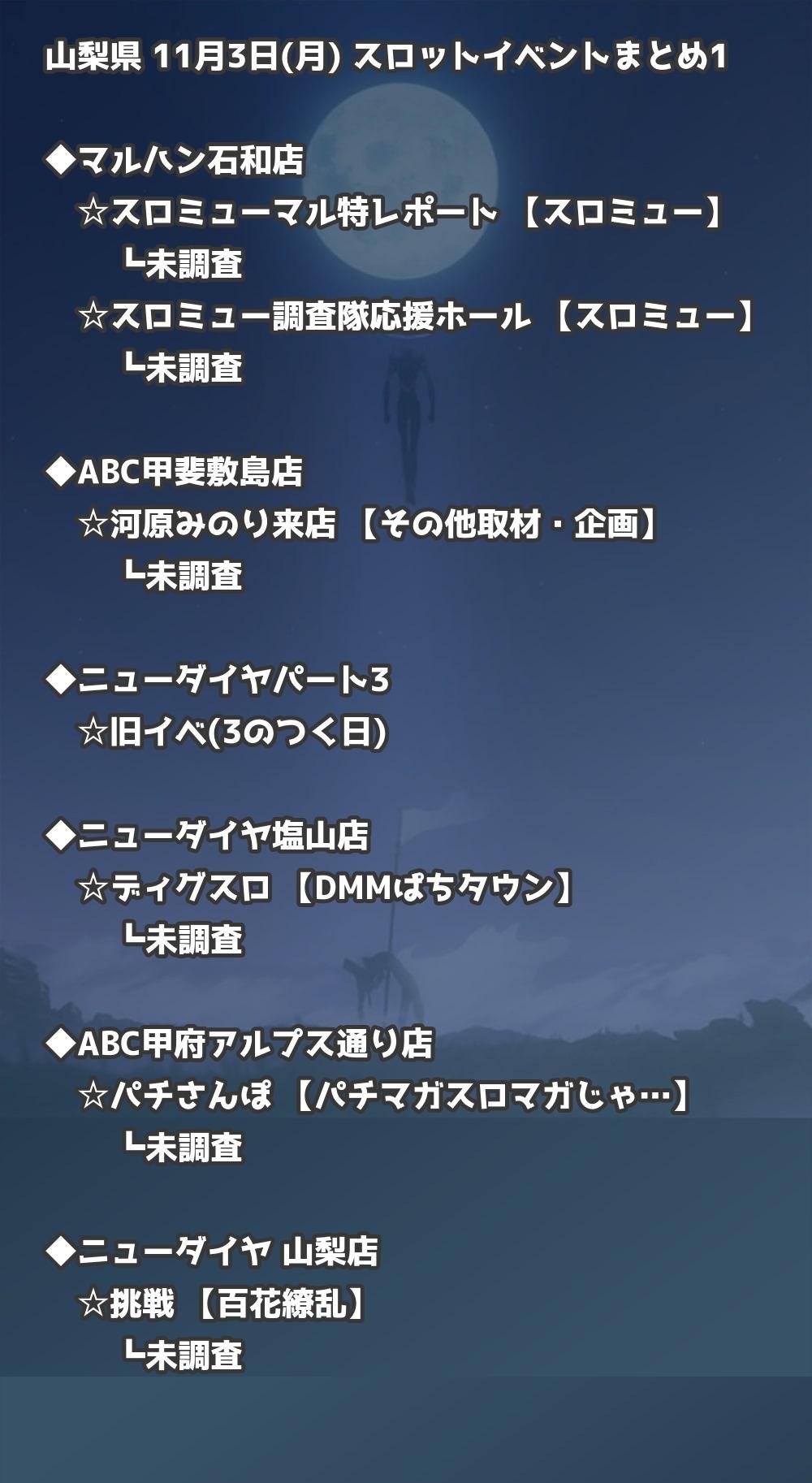 📊 山梨県 11月3日(月) 勝てるパチンコ・スロット取材店舗一覧|おすすめ順