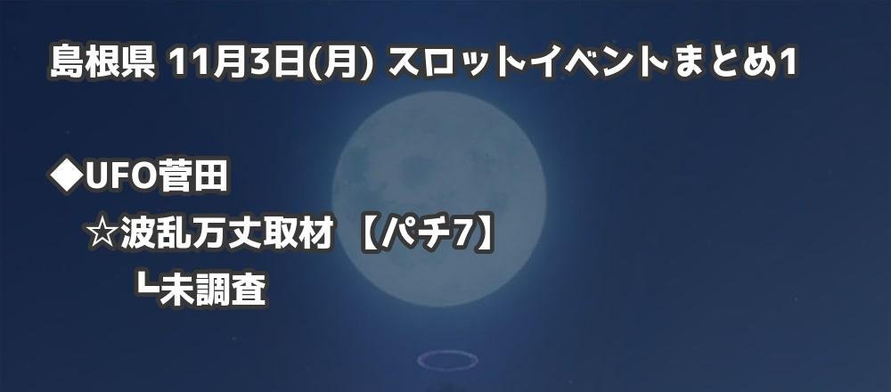 【島根県】11月3日(月) パチンコホールイベント取材まとめ記事です。