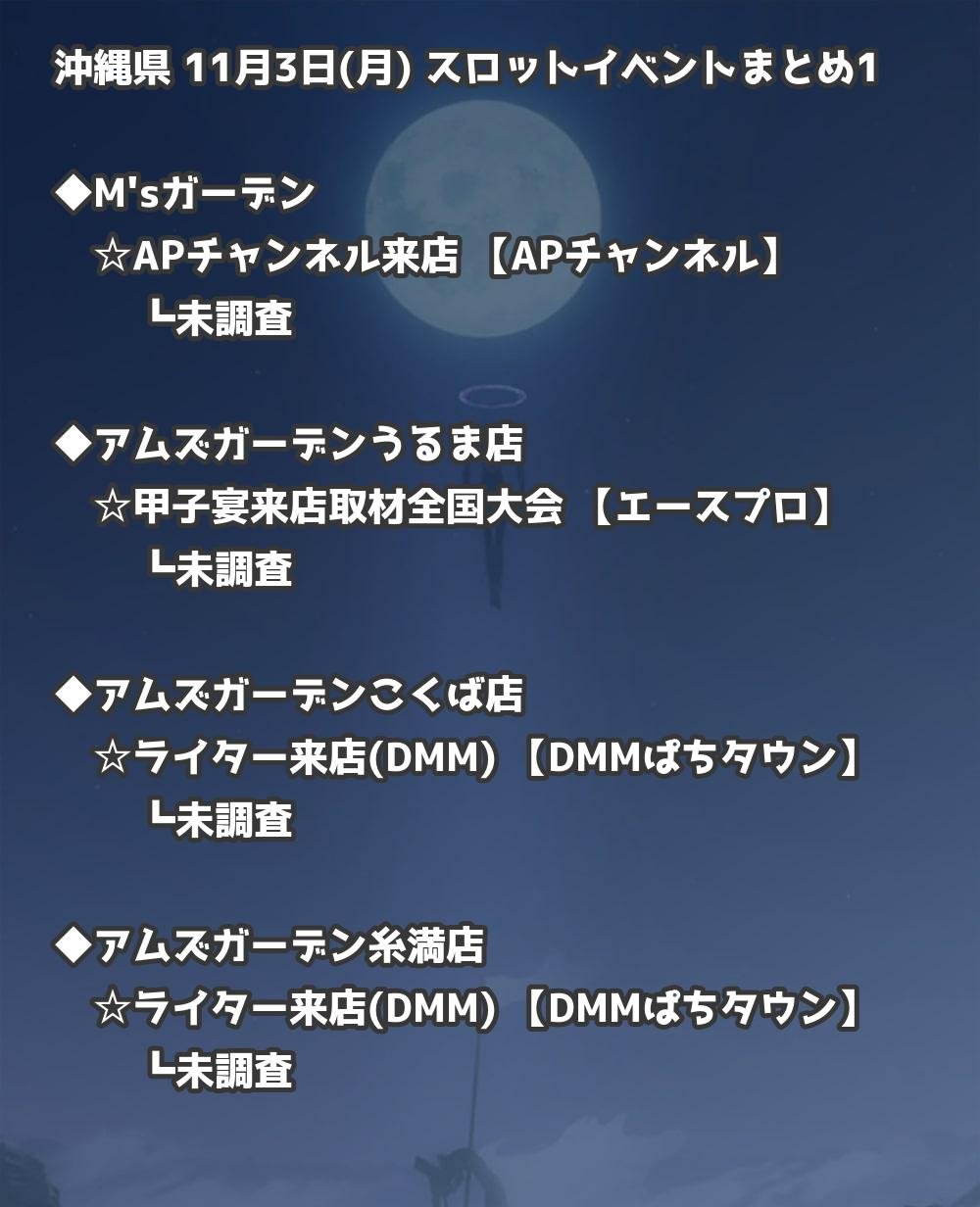 【沖縄県】11月3日(月) パチンコホールイベント取材まとめ記事です。
