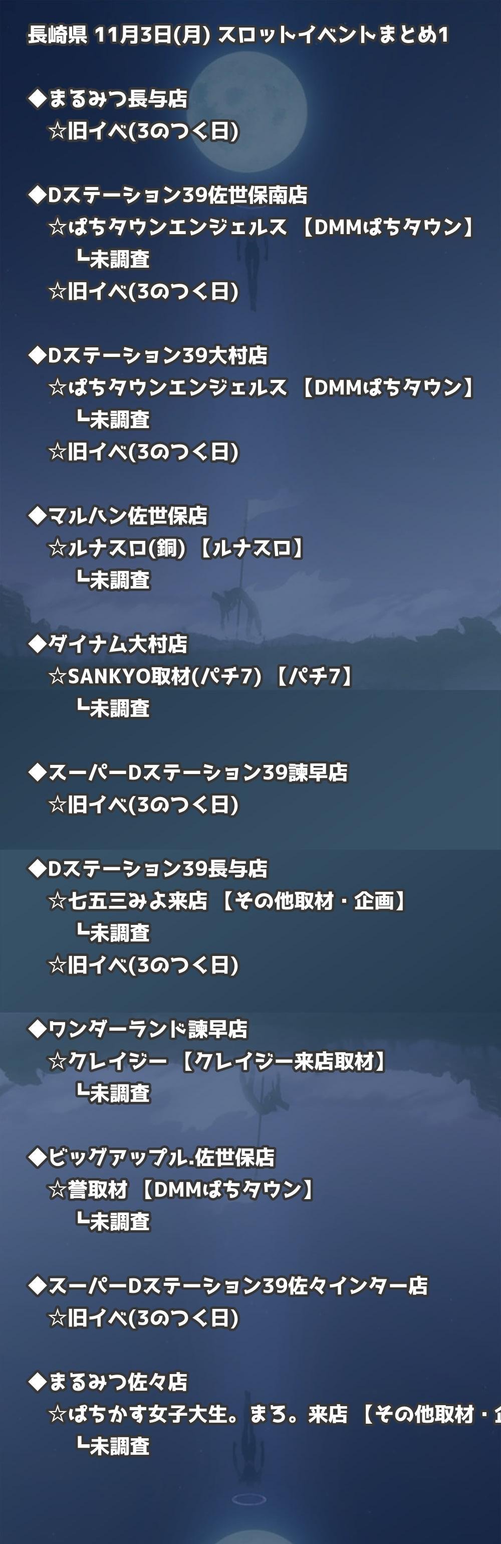 📊 長崎県 11月3日(月) 勝てるパチンコ・スロット取材店舗一覧|おすすめ順