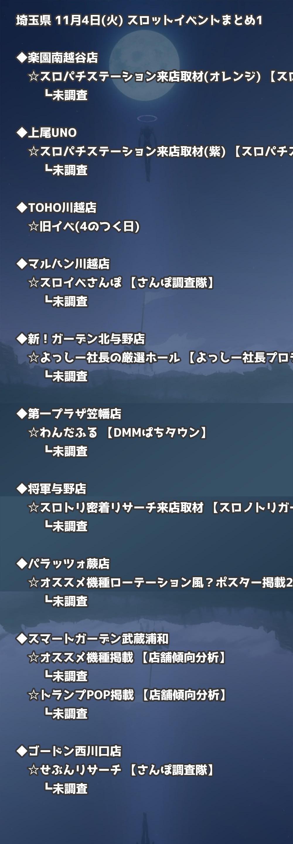 【埼玉県】11月4日(火) パチンコホールイベント取材まとめ記事です。