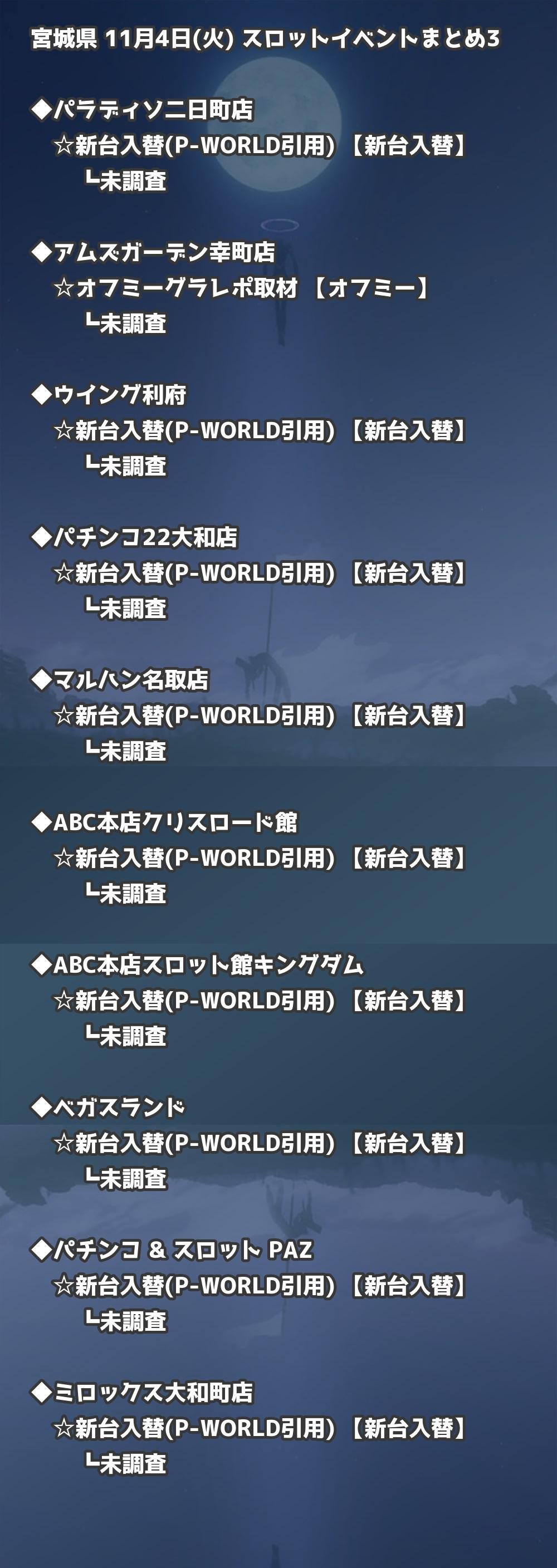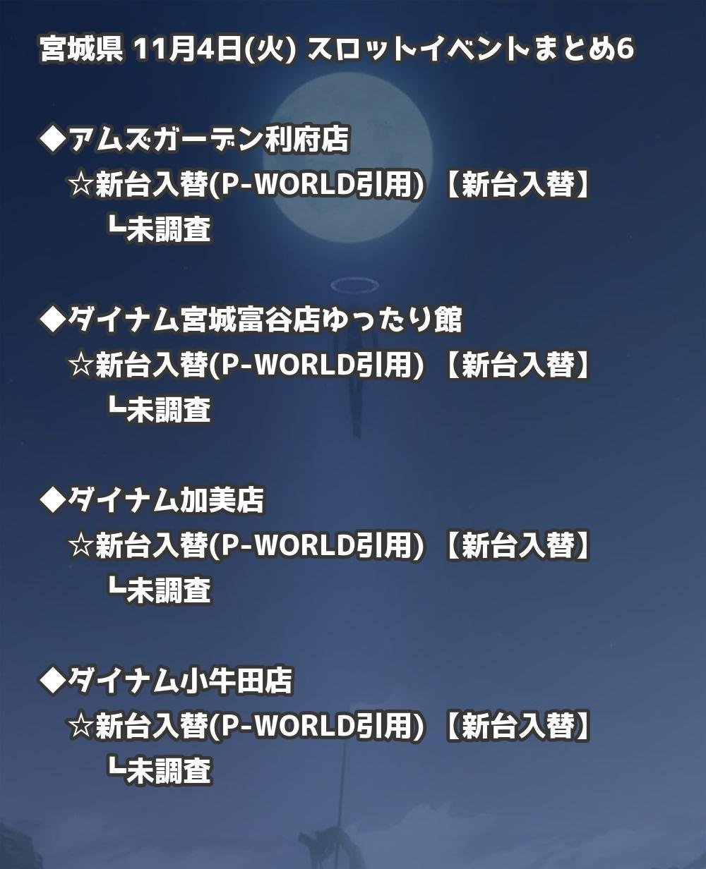 【宮城県】11月4日(火) パチンコホールイベント取材まとめ記事です。