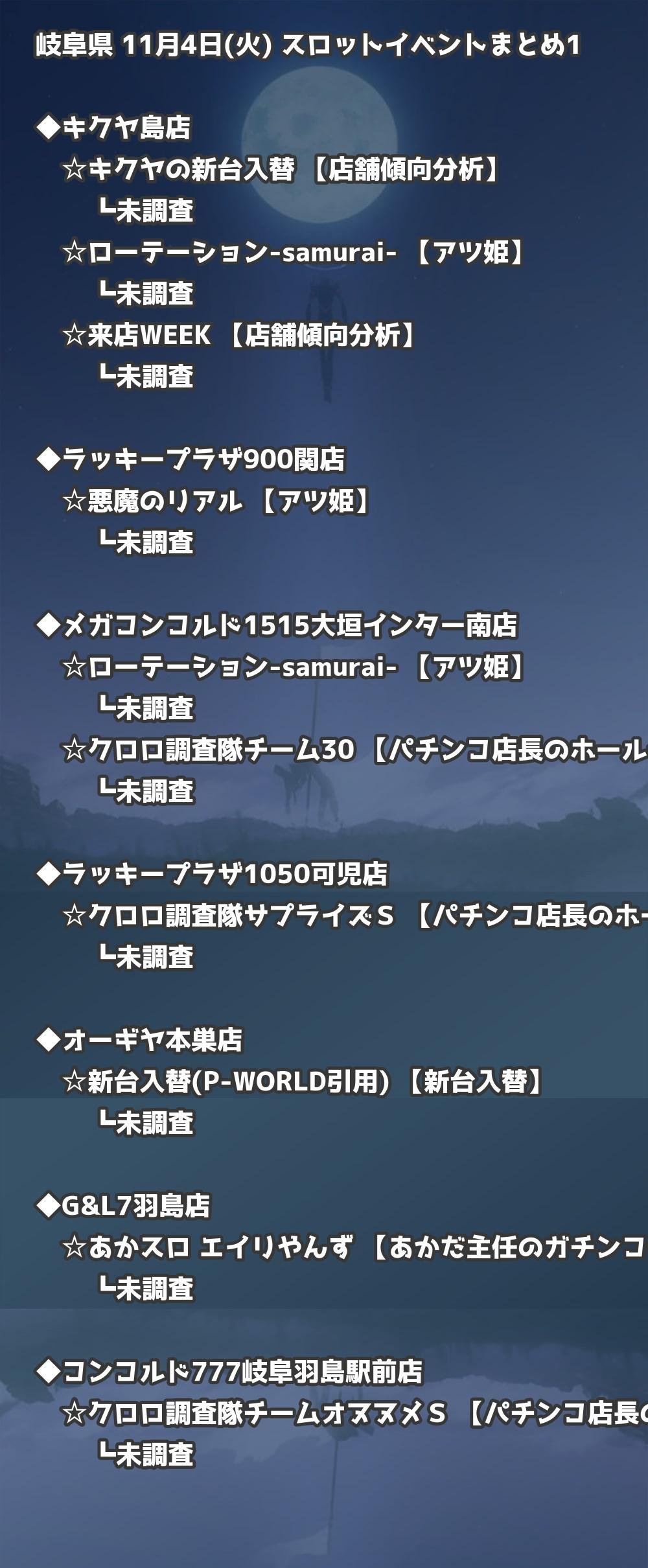 【岐阜県】11月4日(火) パチンコホールイベント取材まとめ記事です。