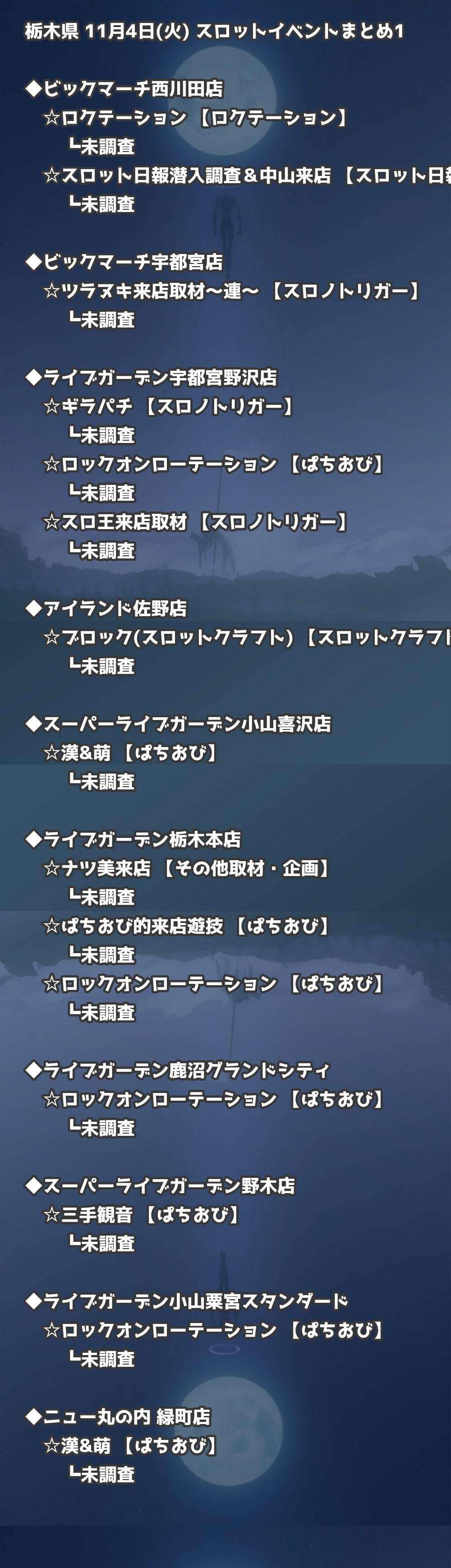 【栃木県】11月4日(火) パチンコホールイベント取材まとめ記事です。