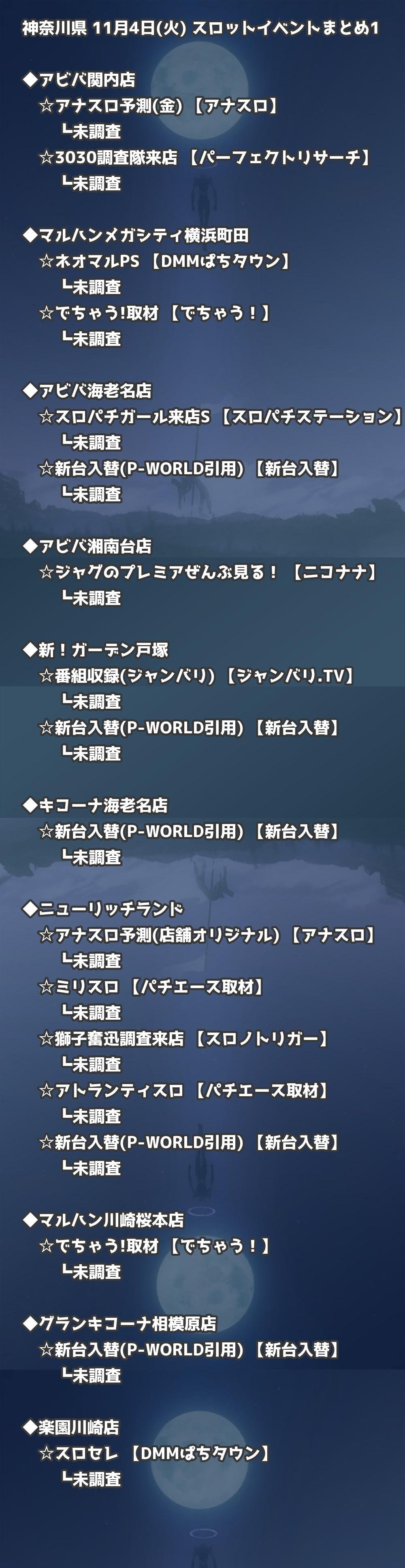【神奈川県】11月4日(火) パチンコホールイベント取材まとめ記事です。