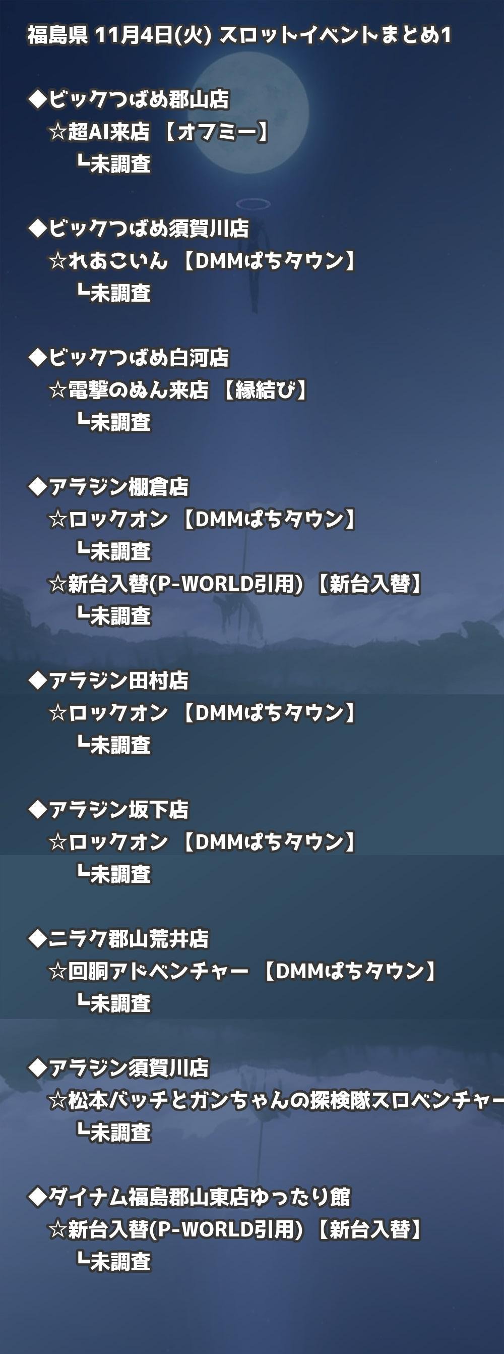 【福島県】11月4日(火) パチンコホールイベント取材まとめ記事です。