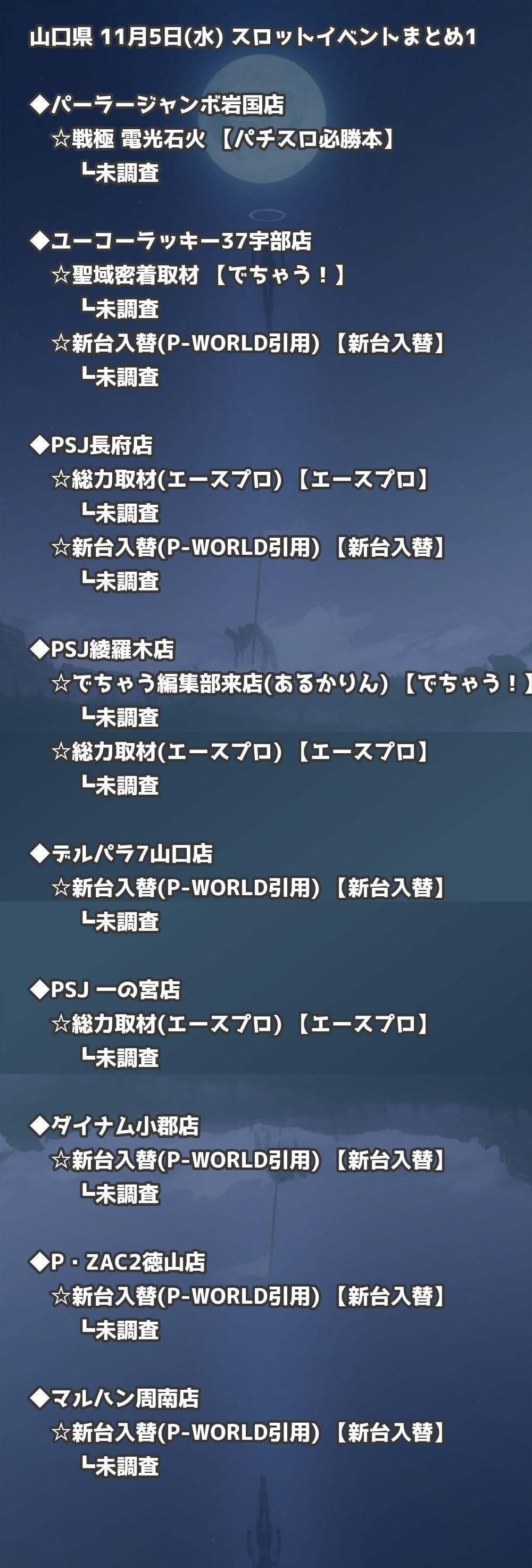 📊 山口県 11月5日(水) 勝てるパチンコ・スロット取材店舗一覧|おすすめ順
