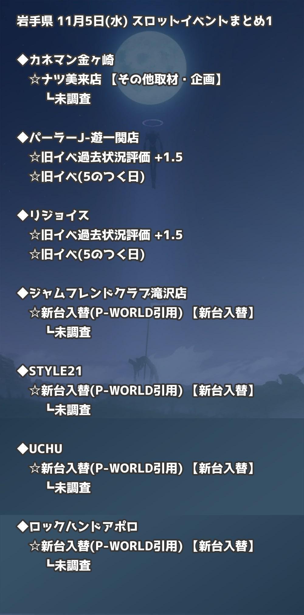 【岩手県】11月5日(水) パチンコホールイベント取材まとめ記事です。