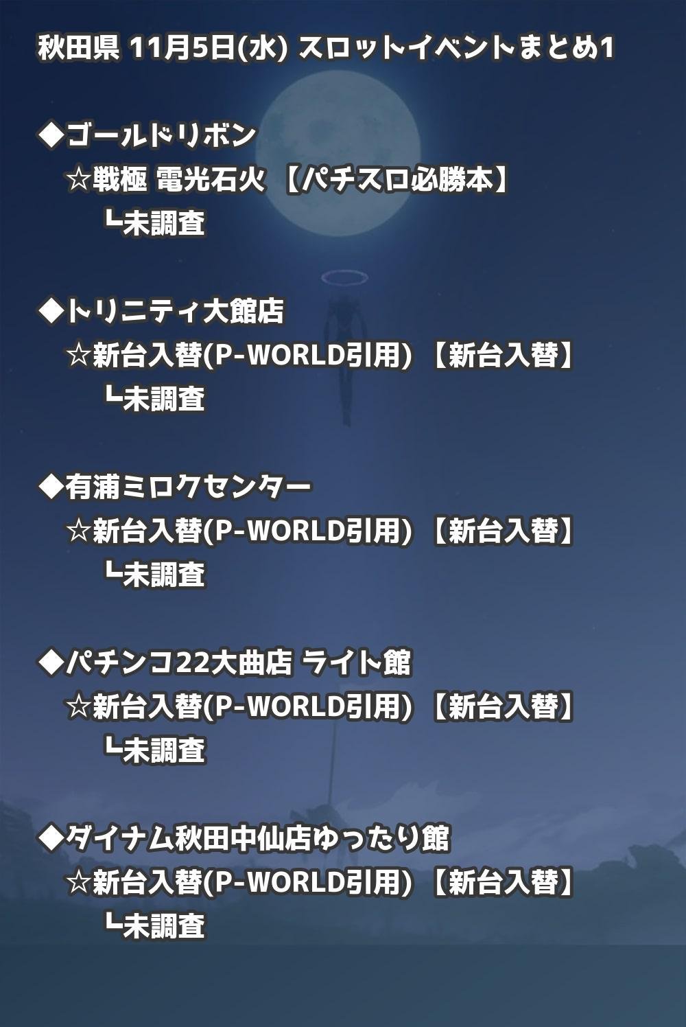 【秋田県】11月5日(水) パチンコホールイベント取材まとめ記事です。