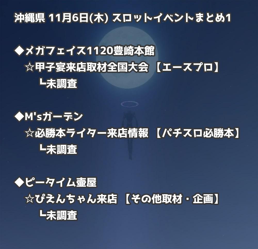 【沖縄県】11月6日(木) パチンコホールイベント取材まとめ記事です。
