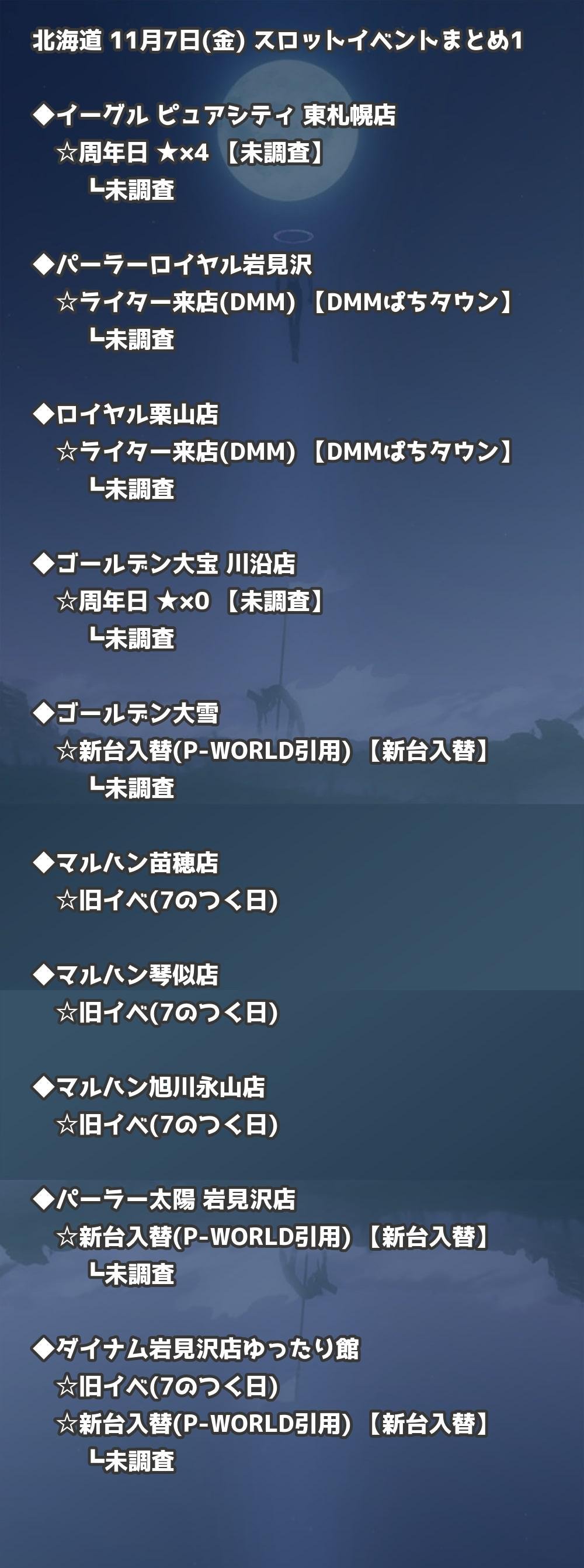 【北海道】11月7日(金) パチンコホールイベント取材まとめ記事です。