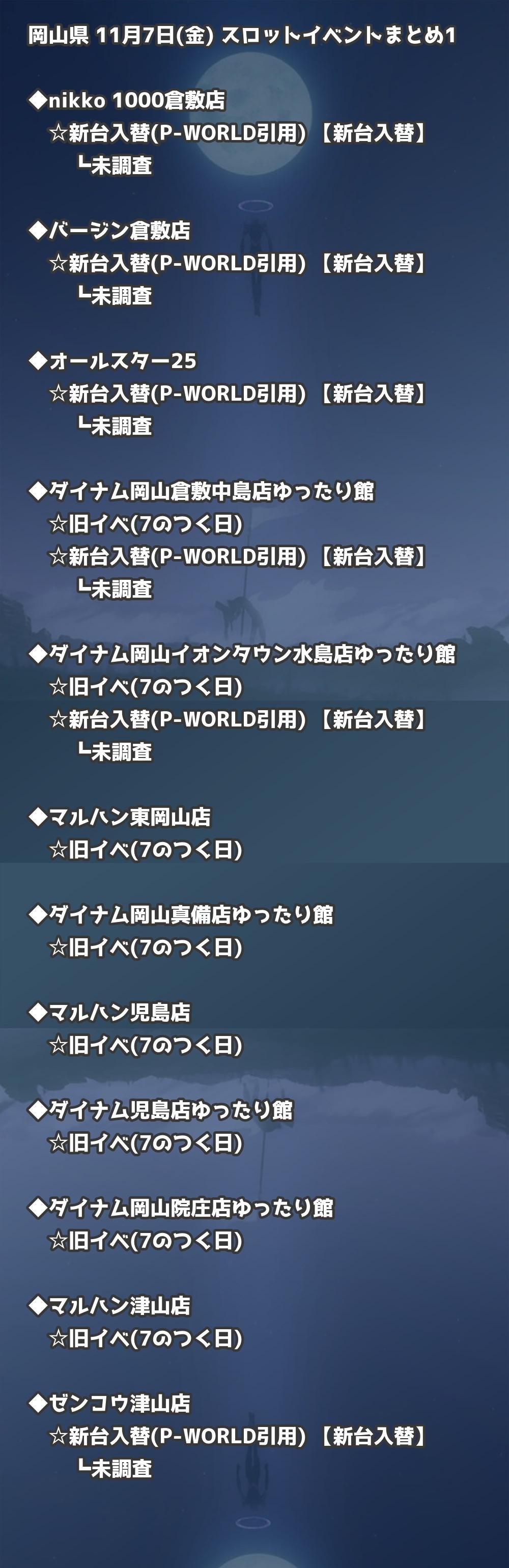 📊 岡山県 11月7日(金) 勝てるパチンコ・スロット取材店舗一覧|おすすめ順