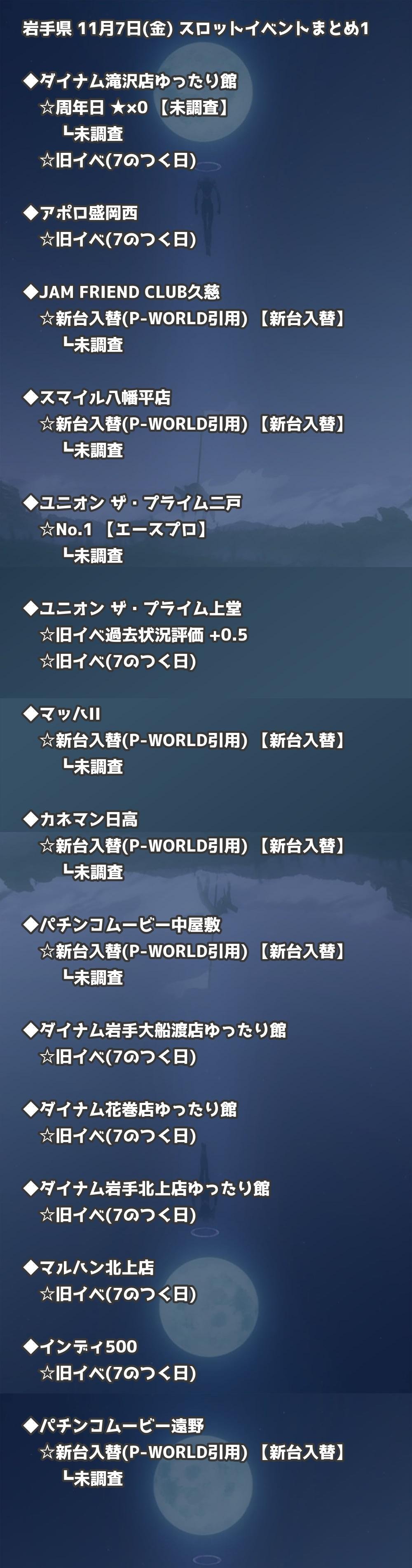 【岩手県】11月7日(金) パチンコホールイベント取材まとめ記事です。