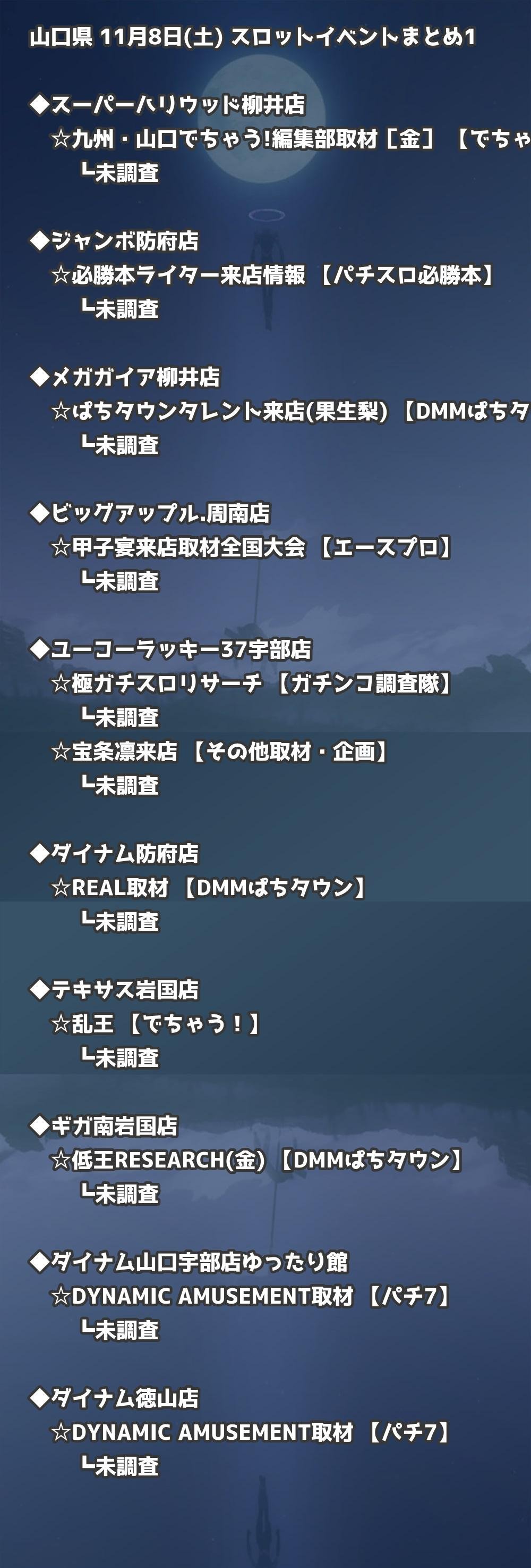 📊 山口県 11月8日(土) 勝てるパチンコ・スロット取材店舗一覧|おすすめ順