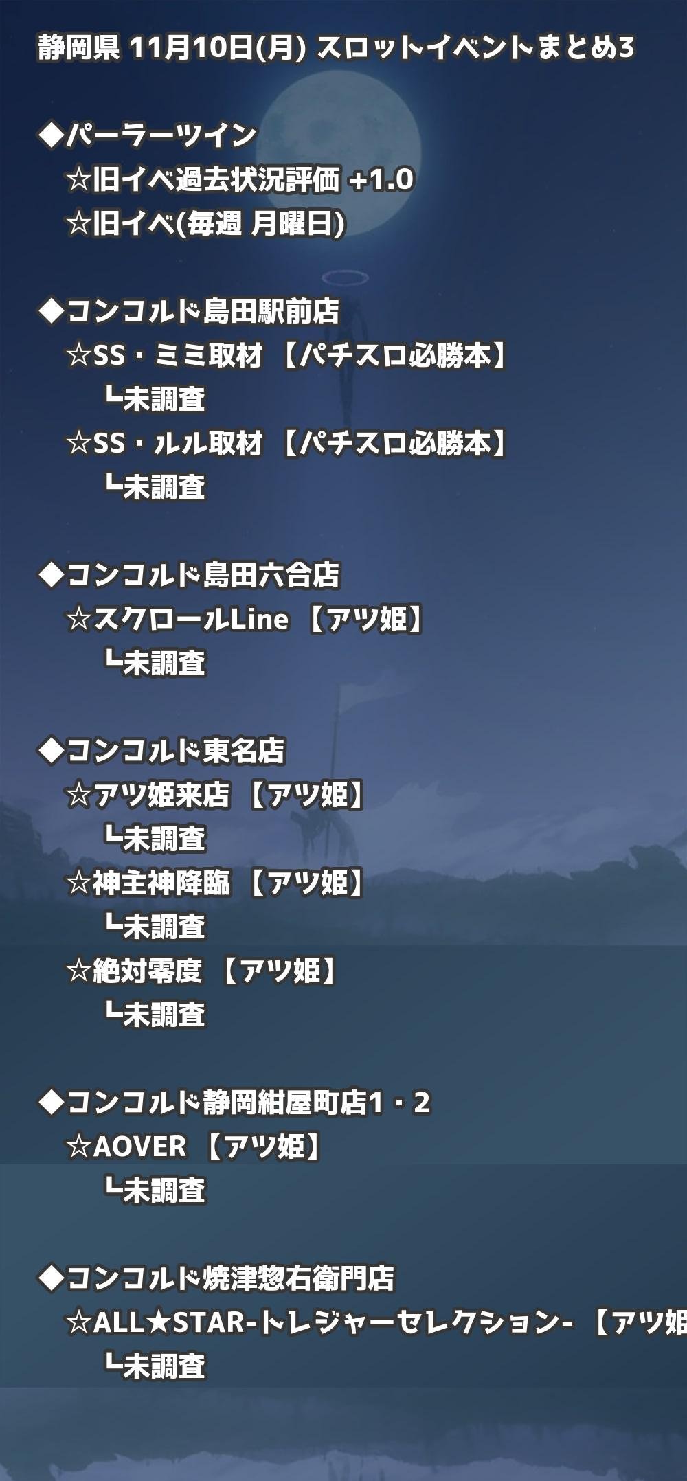 📊 静岡県 11月10日(月) 勝てるパチンコ・スロット取材店舗一覧|おすすめ順