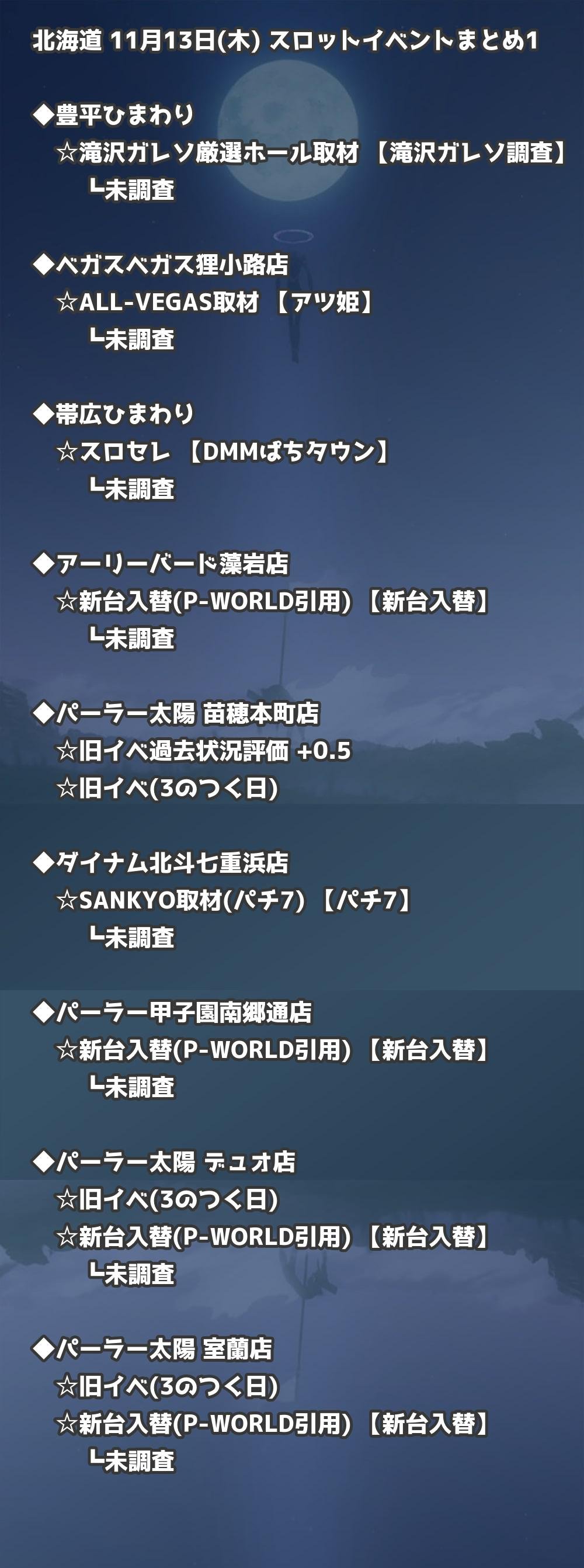 【北海道】11月13日(木) パチンコホールイベント取材まとめ記事です。