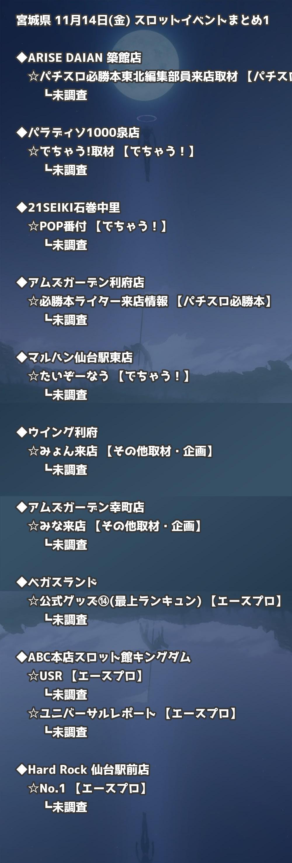 【宮城県】11月14日(金) パチンコホールイベント取材まとめ記事です。