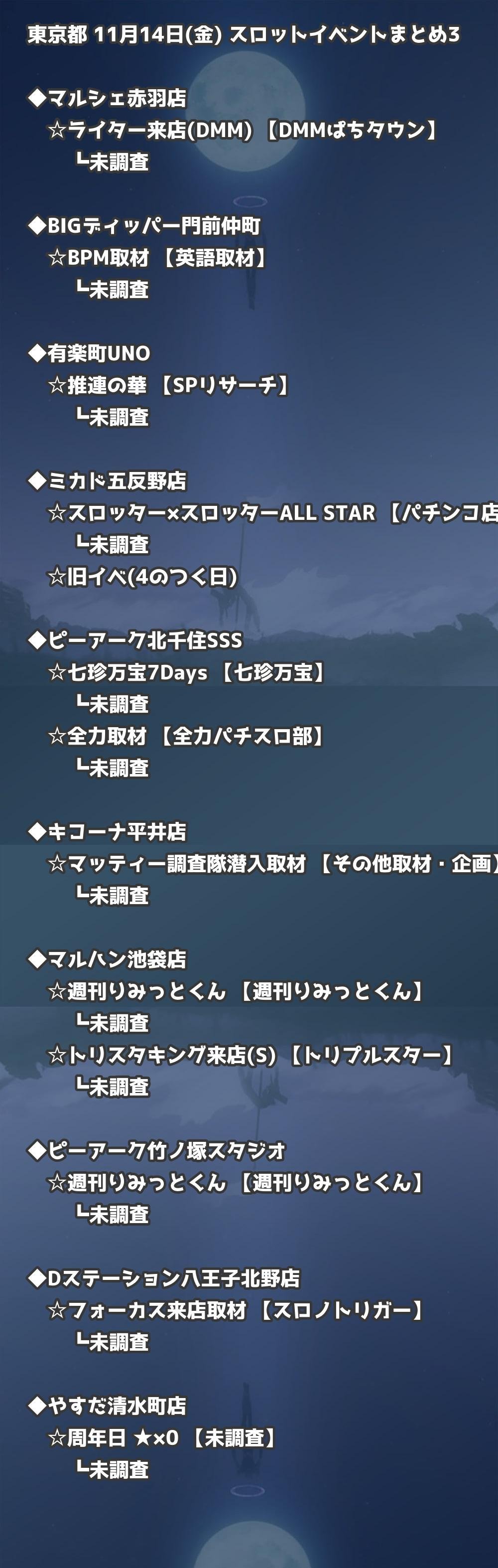 【東京都】11月14日(金) パチンコホールイベント取材まとめ記事です。