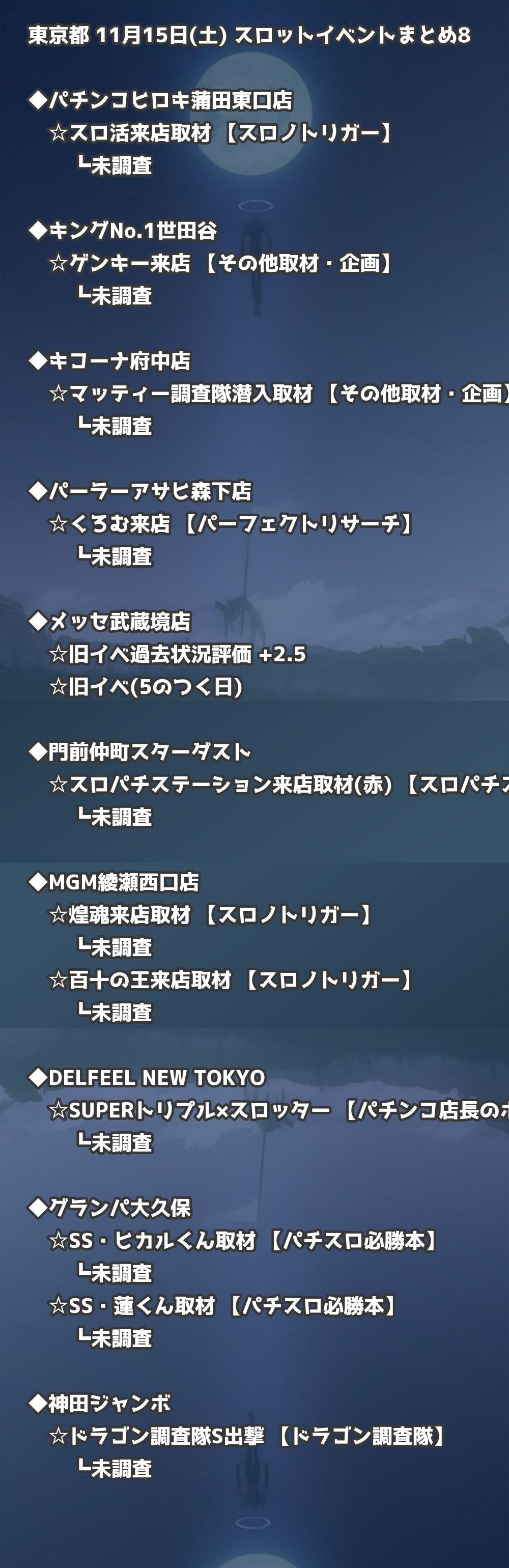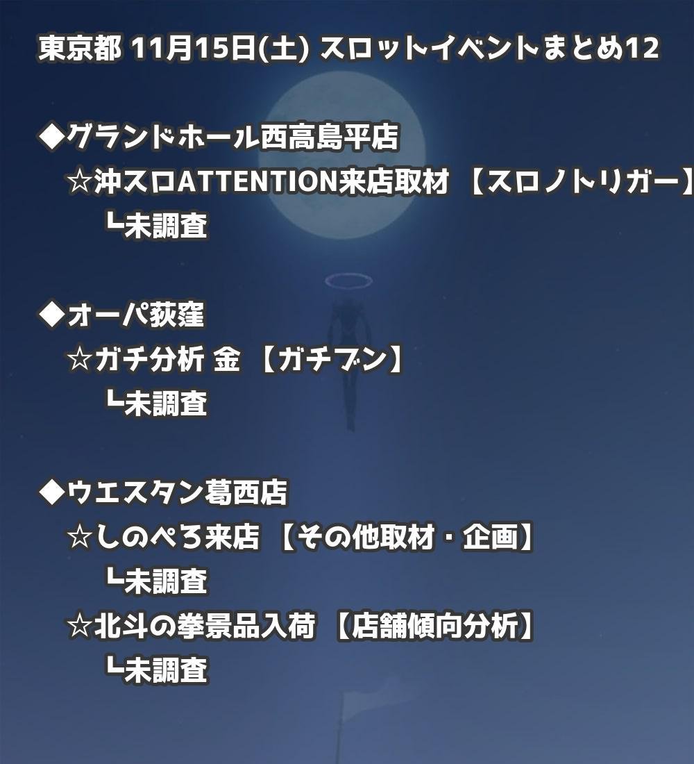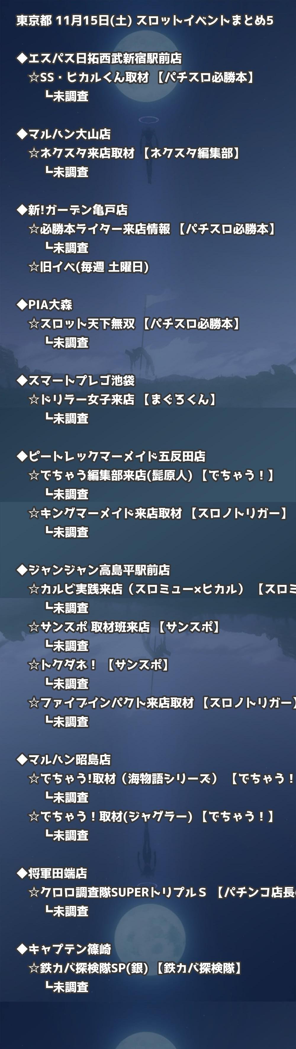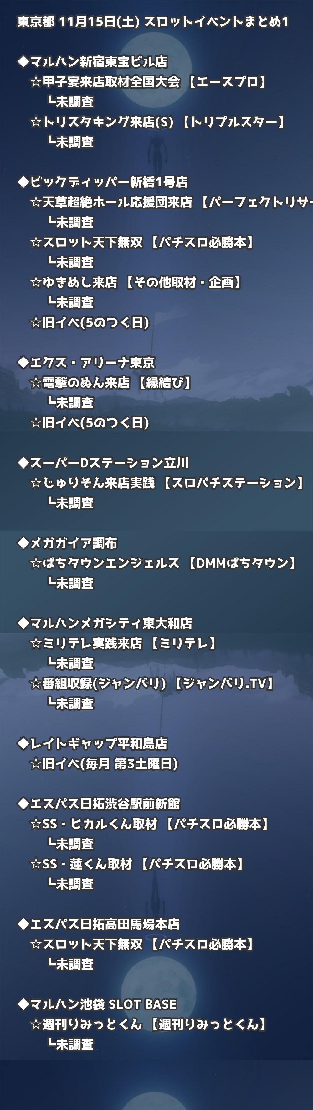 📊 東京都 11月15日(土) 勝てるパチンコ・スロット取材店舗一覧|おすすめ順