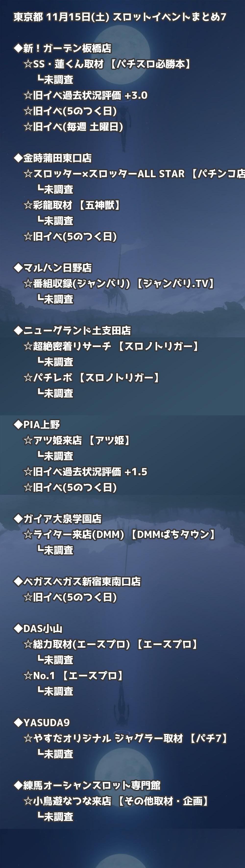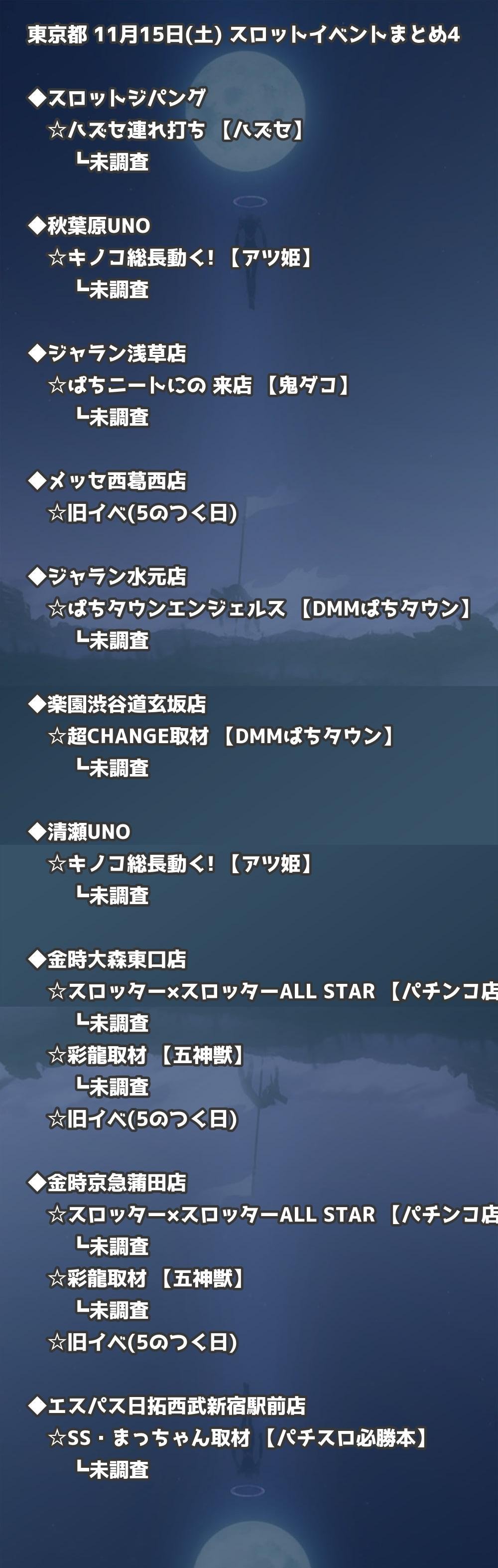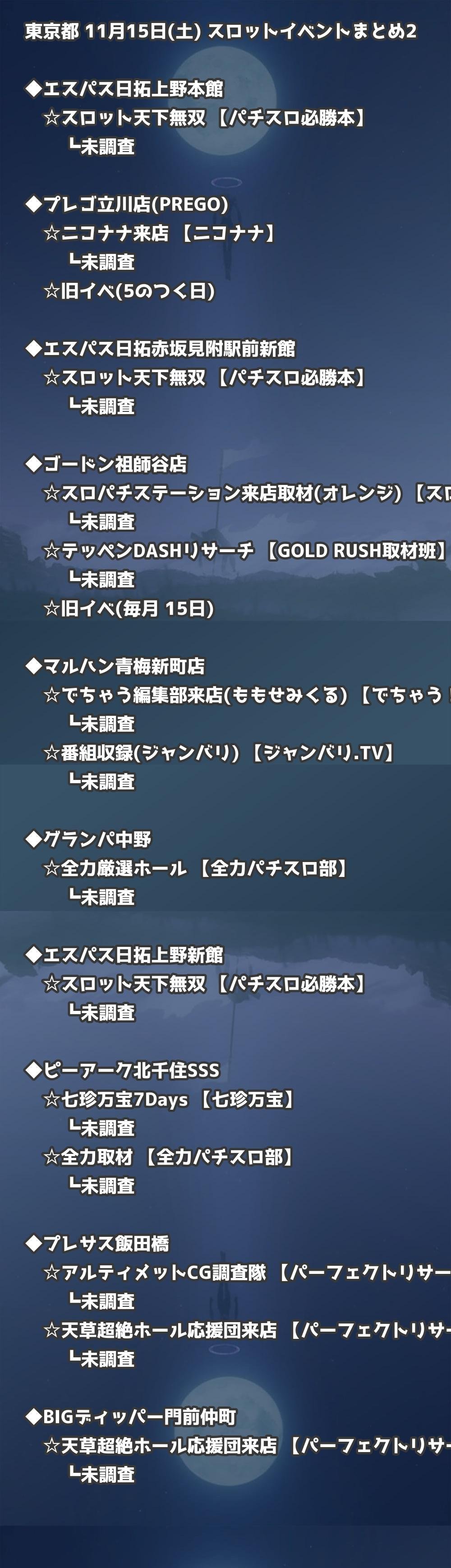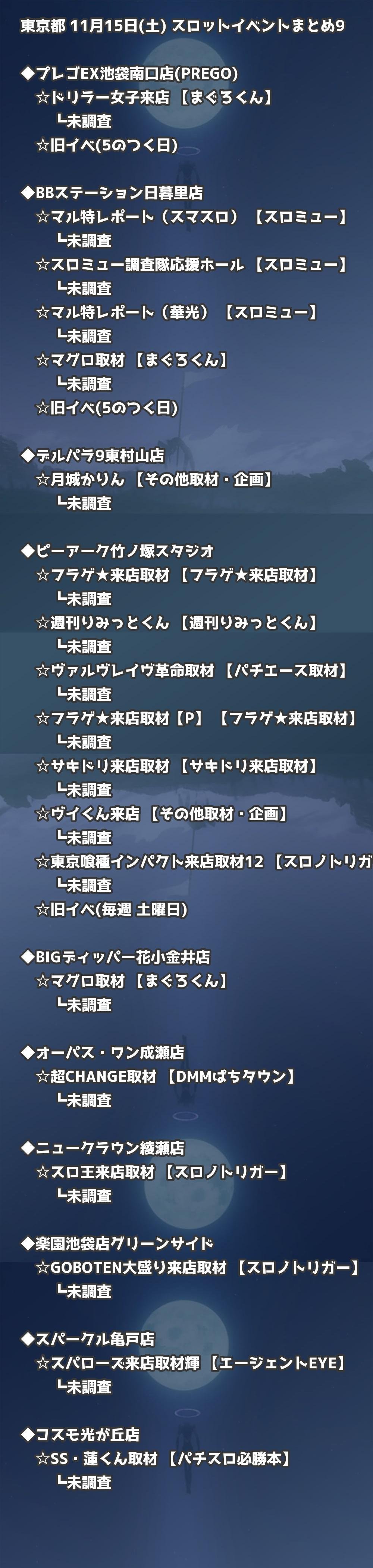 📊 東京都 11月15日(土) 勝てるパチンコ・スロット取材店舗一覧|おすすめ順