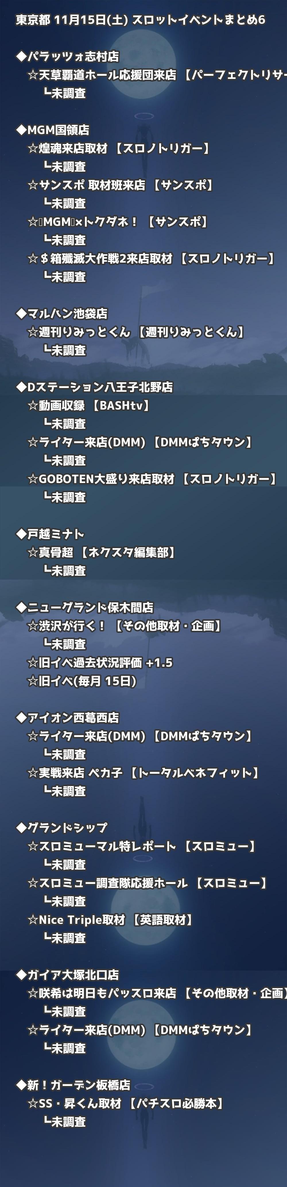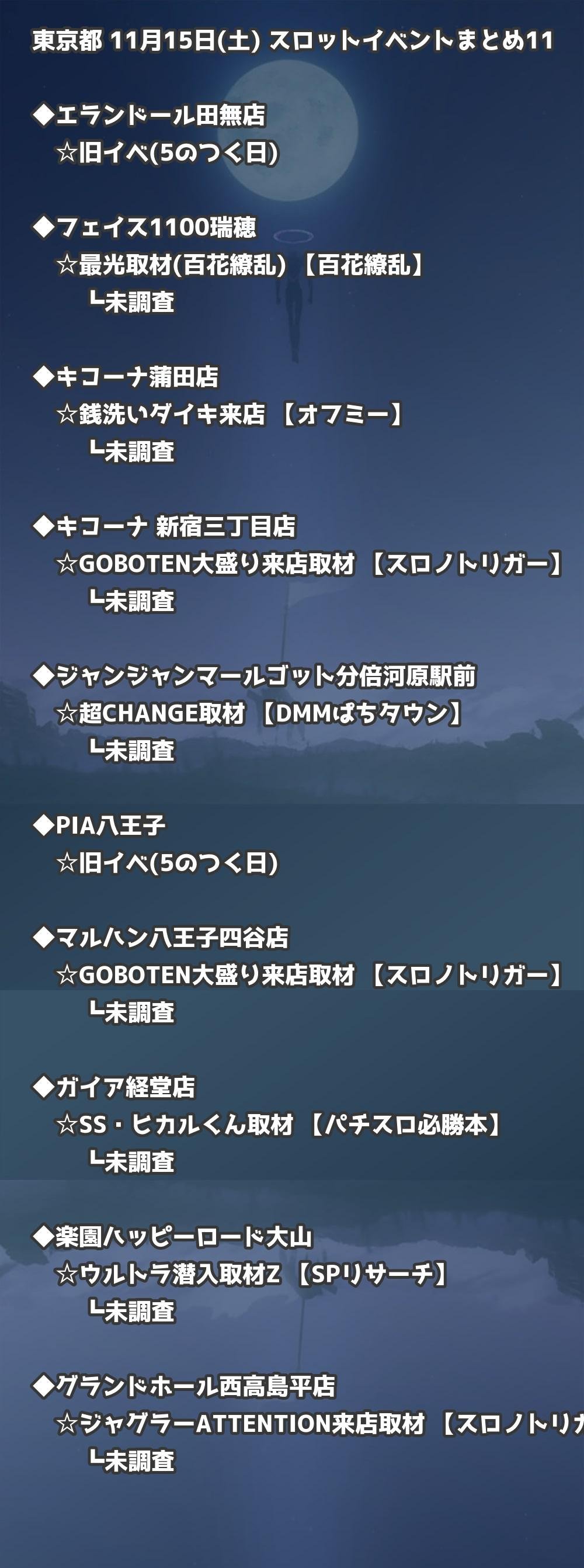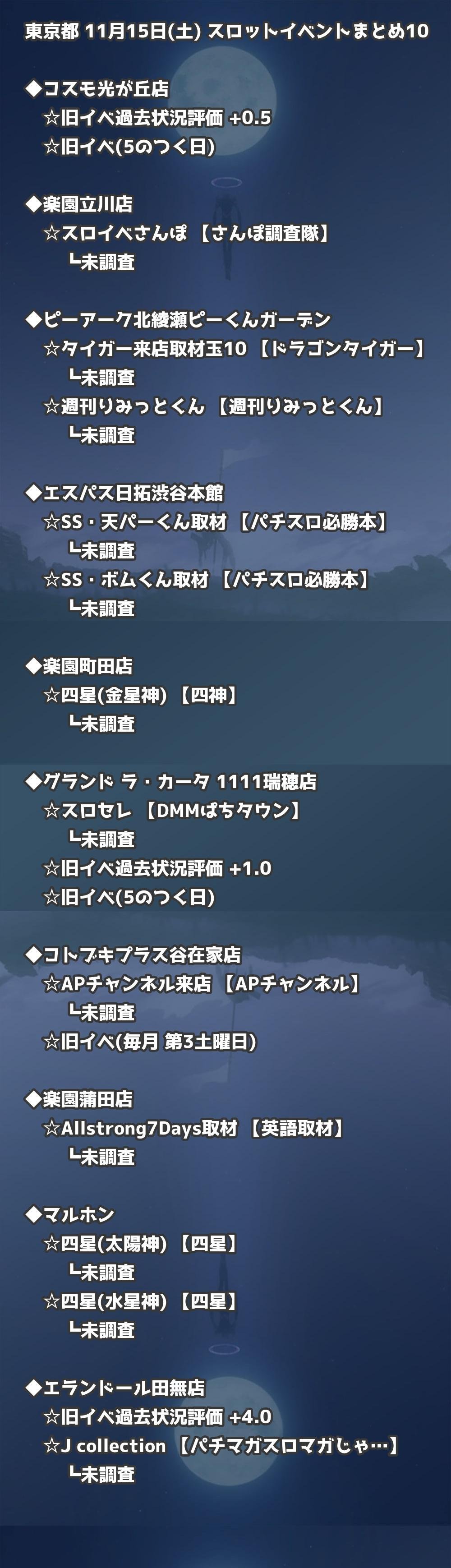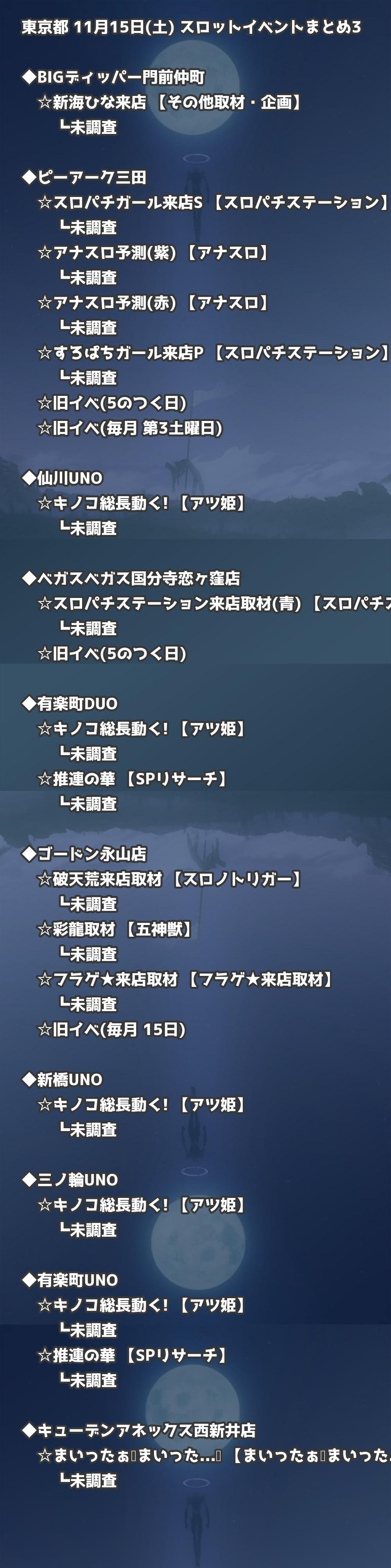 📊 東京都 11月15日(土) 勝てるパチンコ・スロット取材店舗一覧|おすすめ順