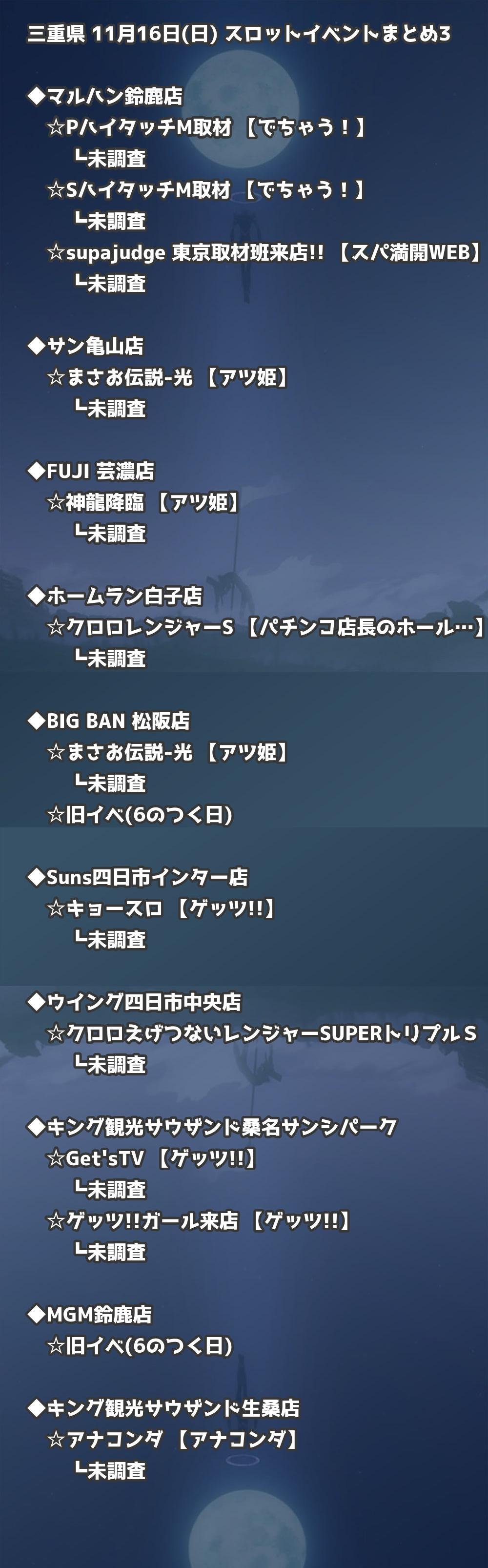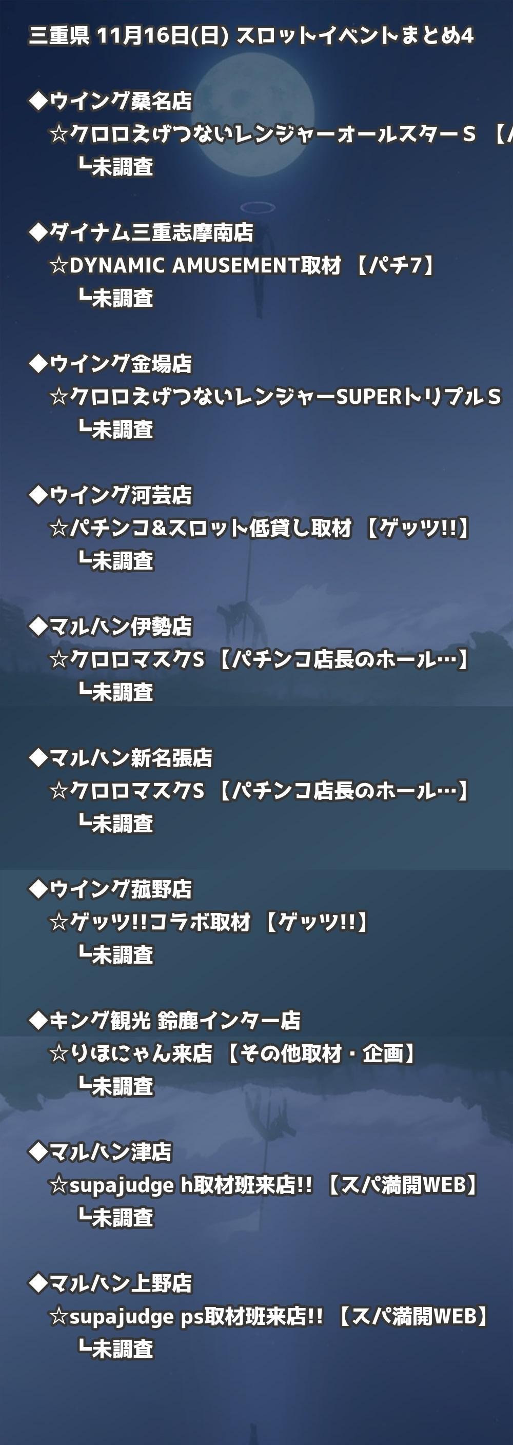 📊 三重県 11月16日(日) 勝てるパチンコ・スロット取材店舗一覧|おすすめ順