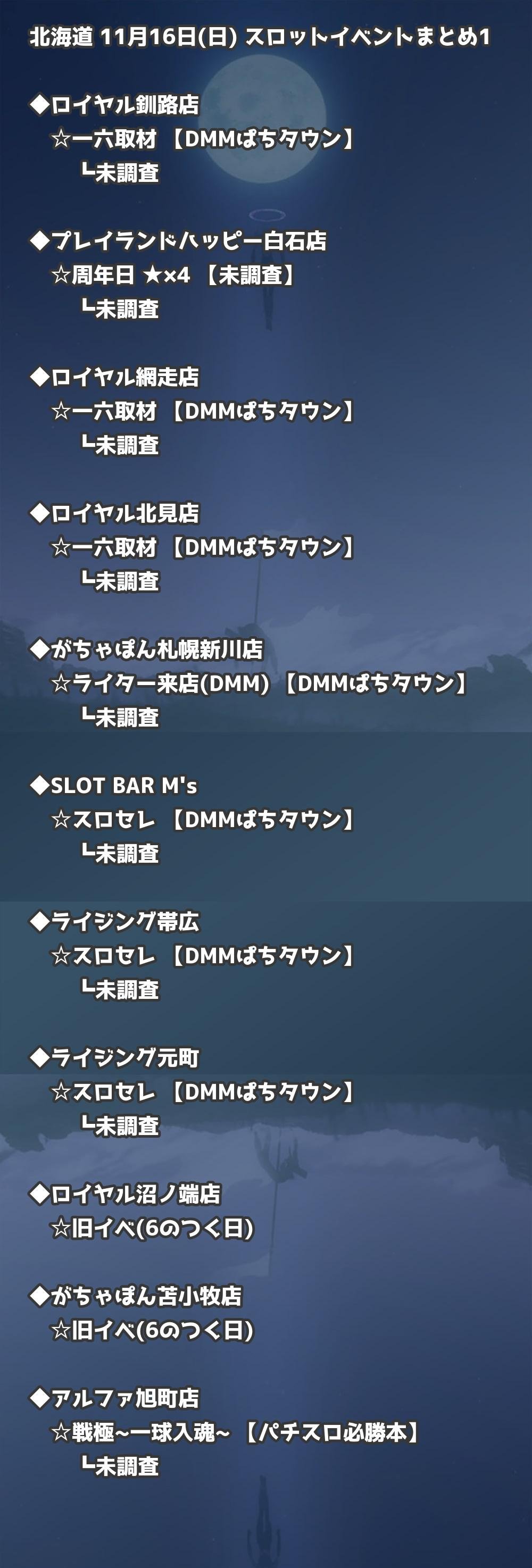 【北海道】11月16日(日) パチンコホールイベント取材まとめ記事です。