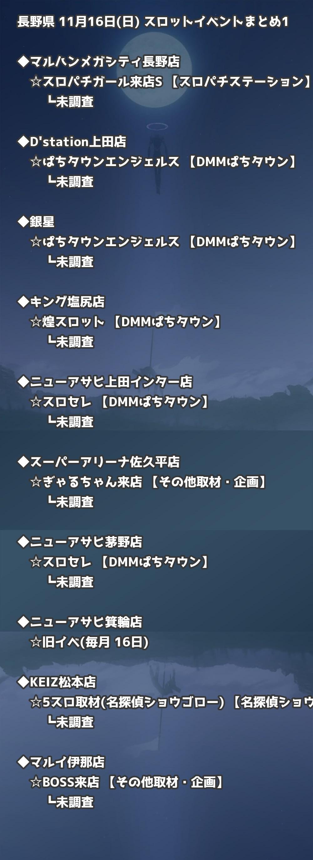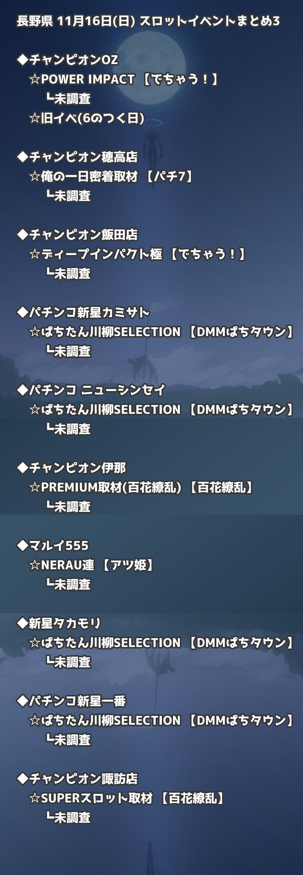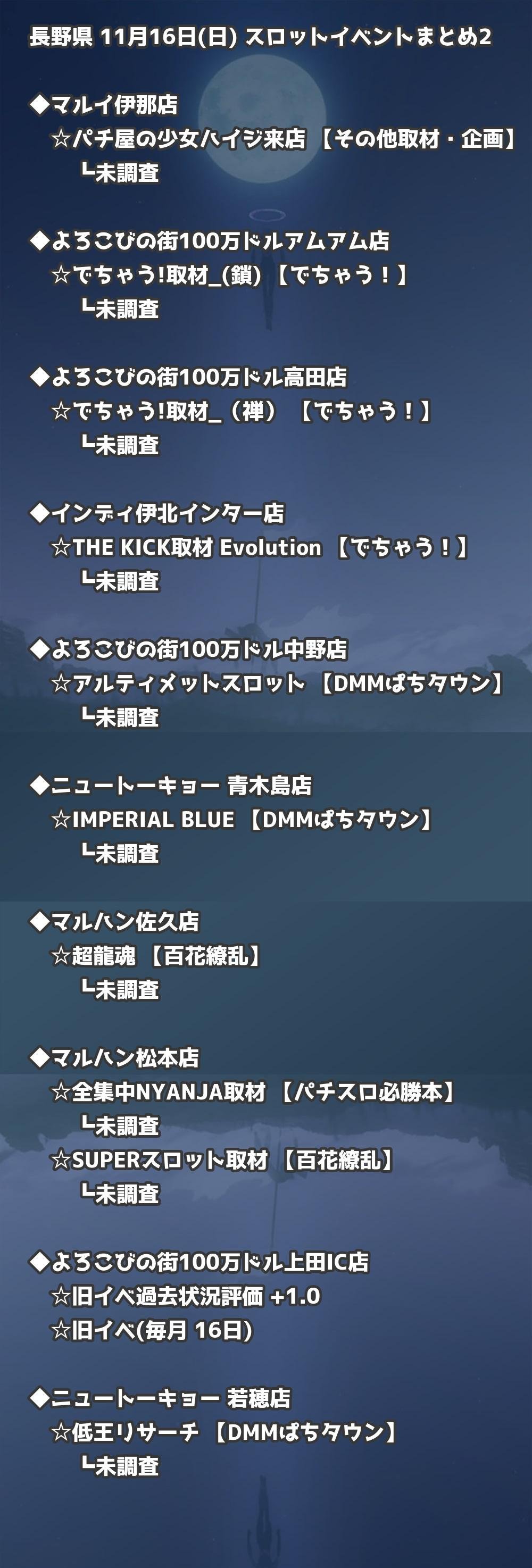 📊 長野県 11月16日(日) 勝てるパチンコ・スロット取材店舗一覧|おすすめ順