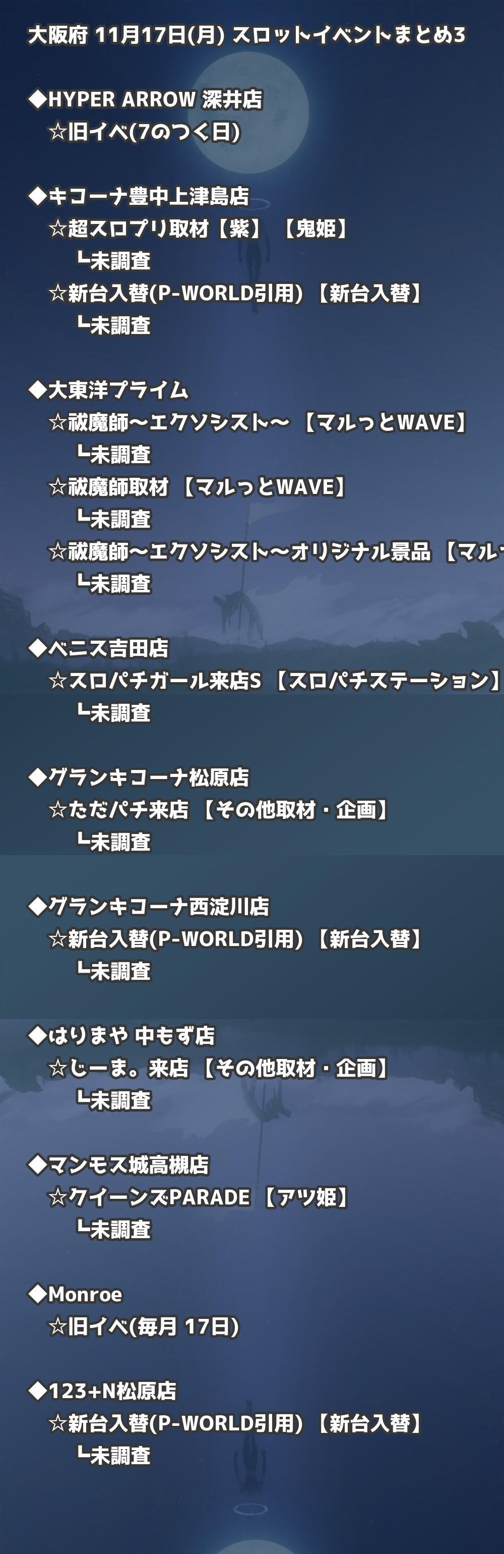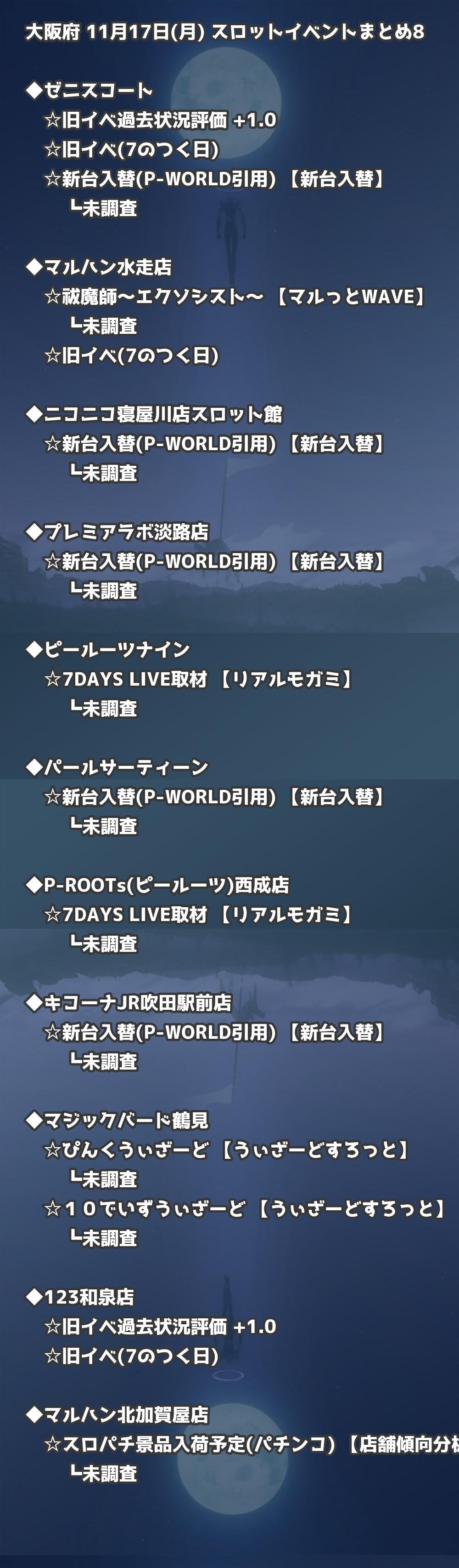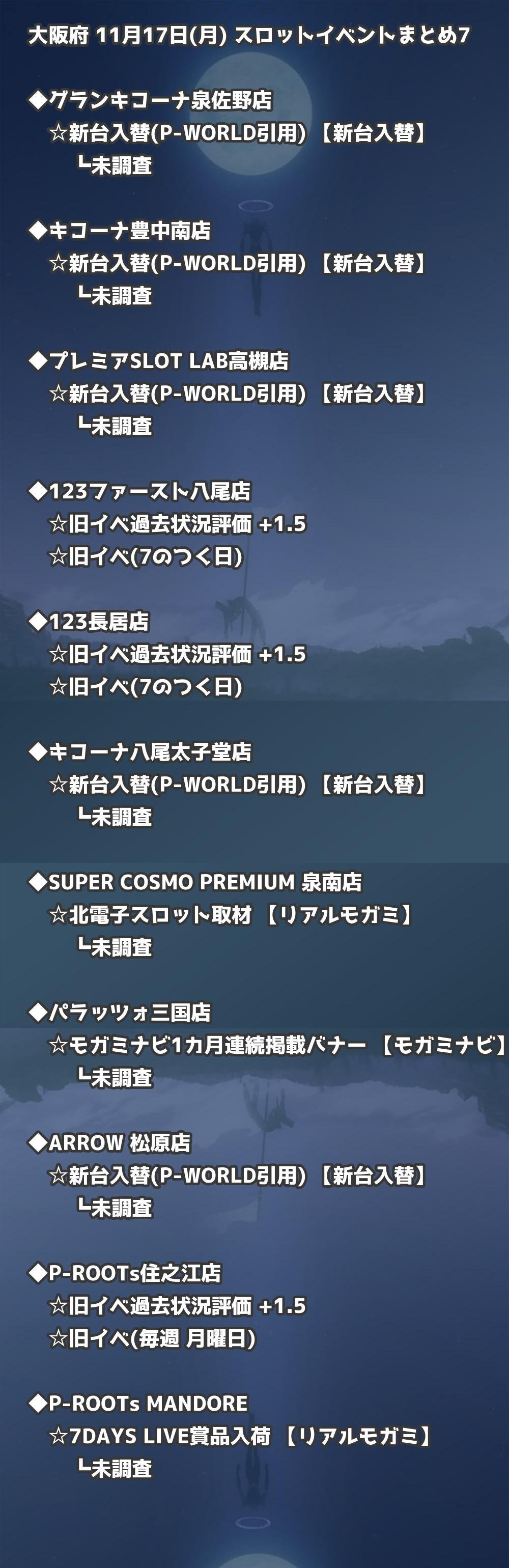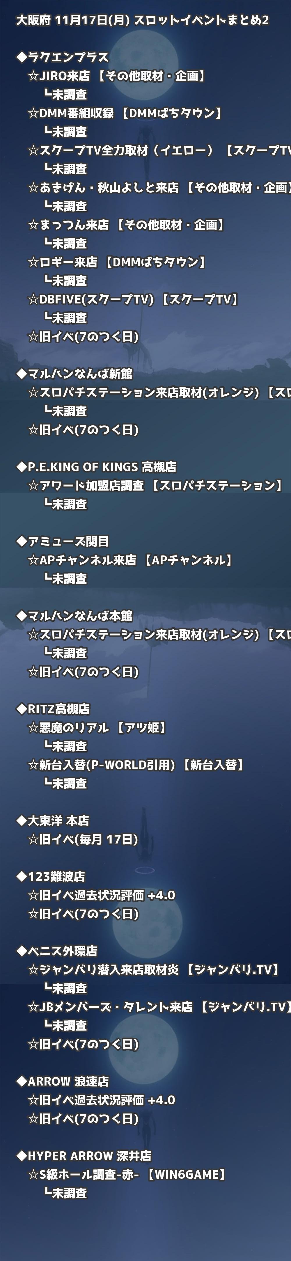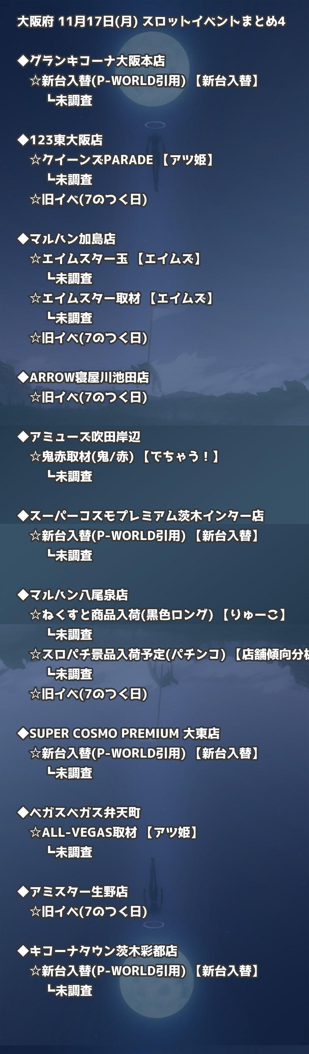 📊 大阪府 11月17日(月) 勝てるパチンコ・スロット取材店舗一覧|おすすめ順
