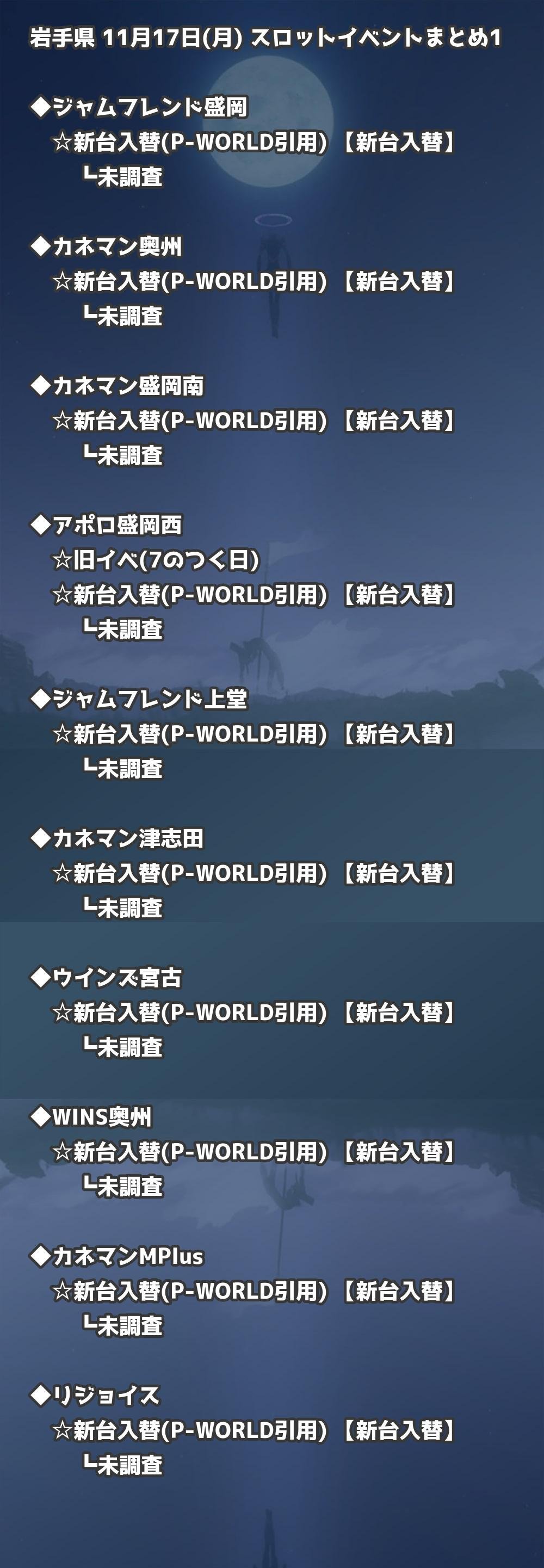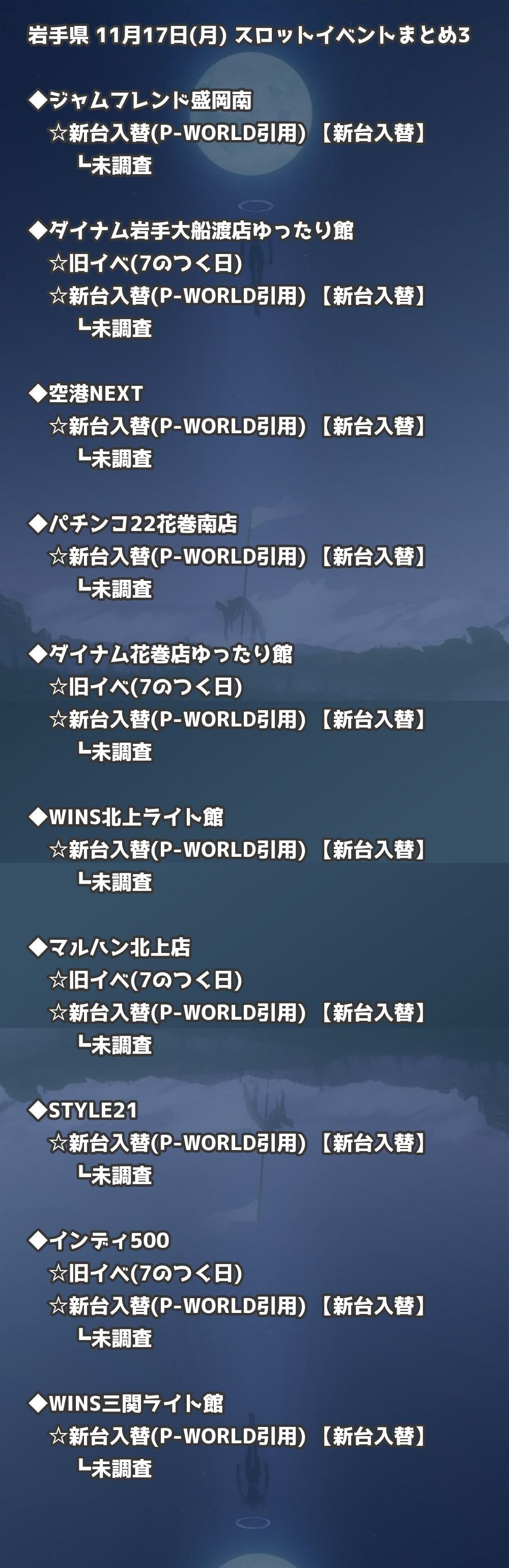 【岩手県】11月17日(月) パチンコホールイベント取材まとめ記事です。