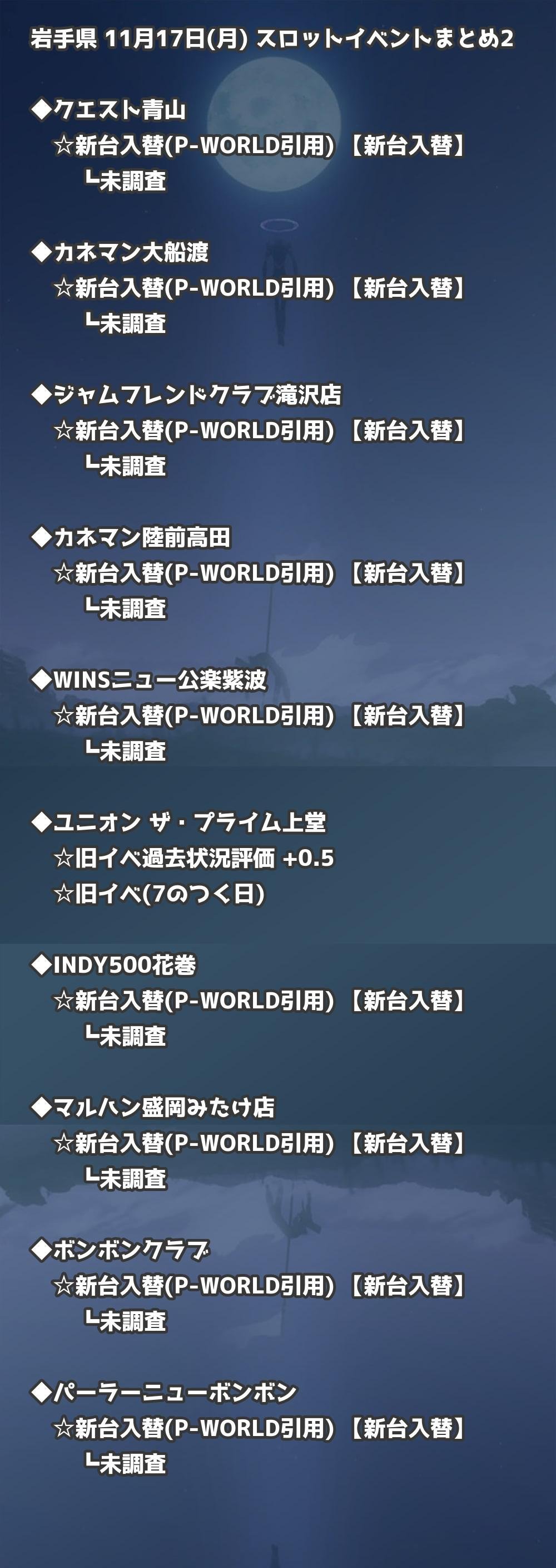 📊 岩手県 11月17日(月) 勝てるパチンコ・スロット取材店舗一覧|おすすめ順