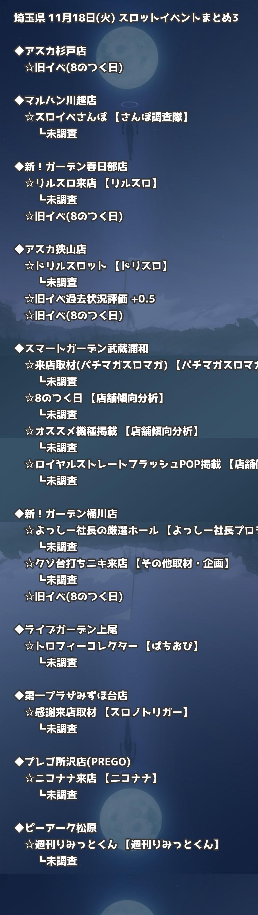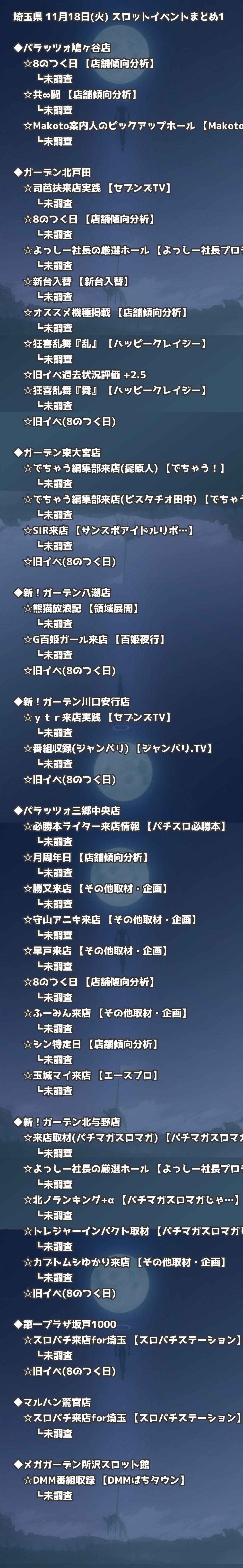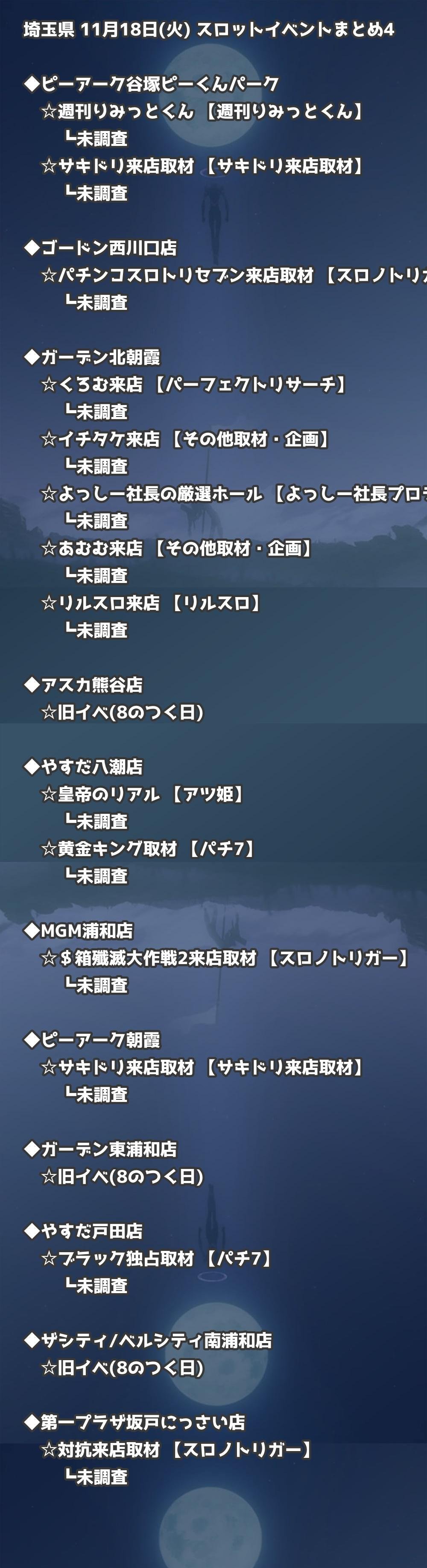 📊 埼玉県 11月18日(火) 勝てるパチンコ・スロット取材店舗一覧|おすすめ順