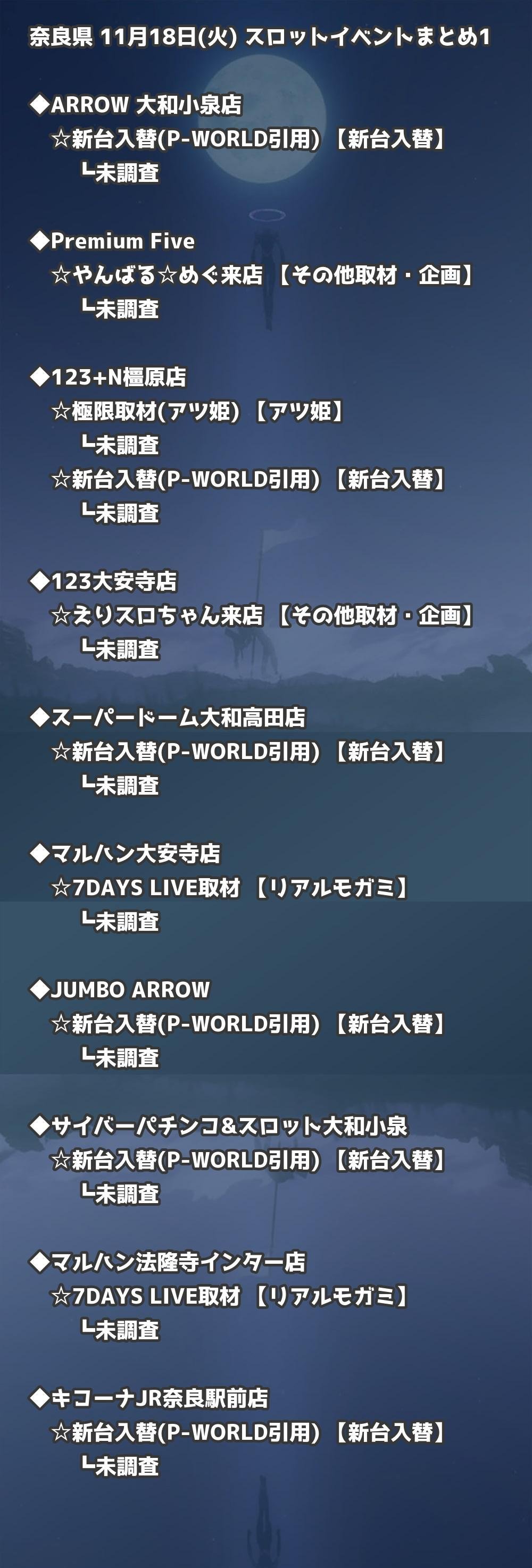 【奈良県】11月18日(火) パチンコホールイベント取材まとめ記事です。