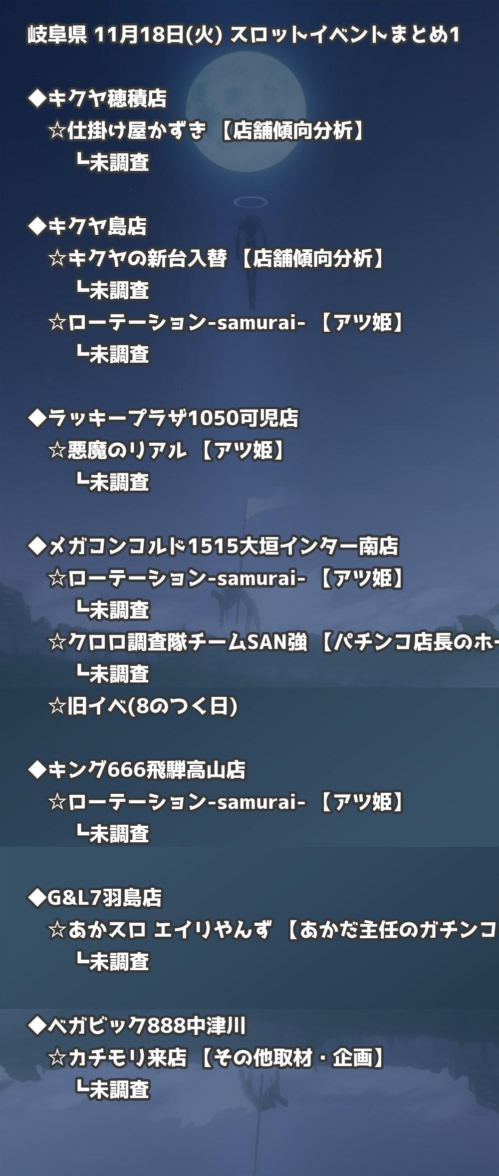 📊 岐阜県 11月18日(火) 勝てるパチンコ・スロット取材店舗一覧|おすすめ順