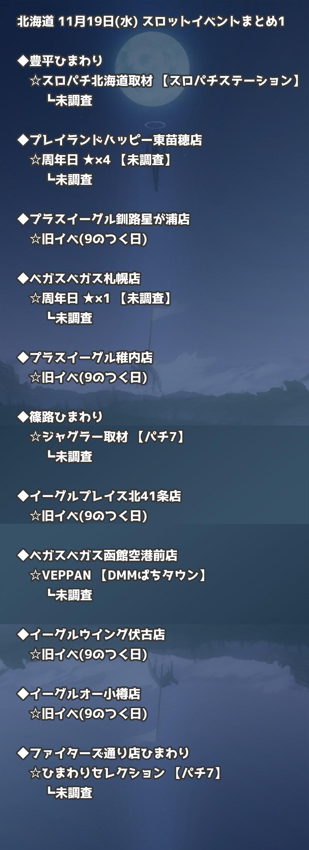 📊 北海道 11月19日(水) 勝てるパチンコ・スロット取材店舗一覧|おすすめ順