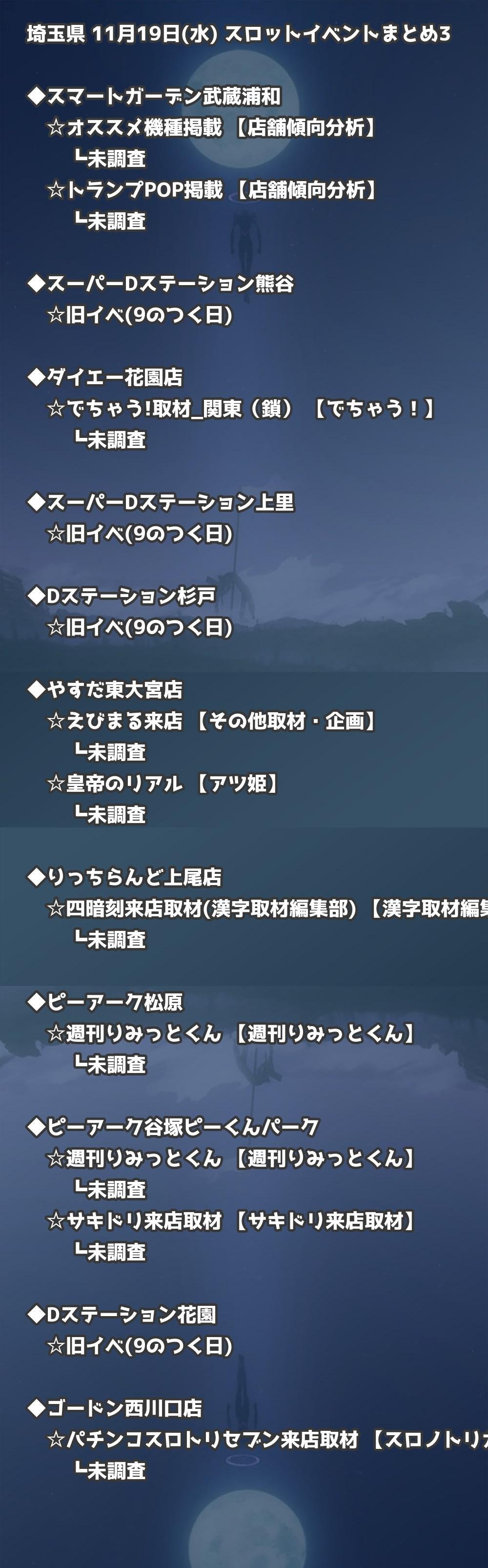 📊 埼玉県 11月19日(水) 勝てるパチンコ・スロット取材店舗一覧|おすすめ順