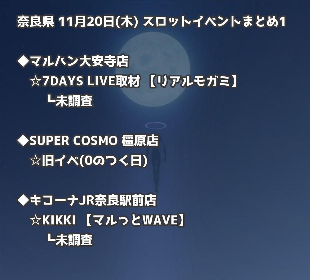 【奈良県】11月20日(木) パチンコホールイベント取材まとめ記事です。