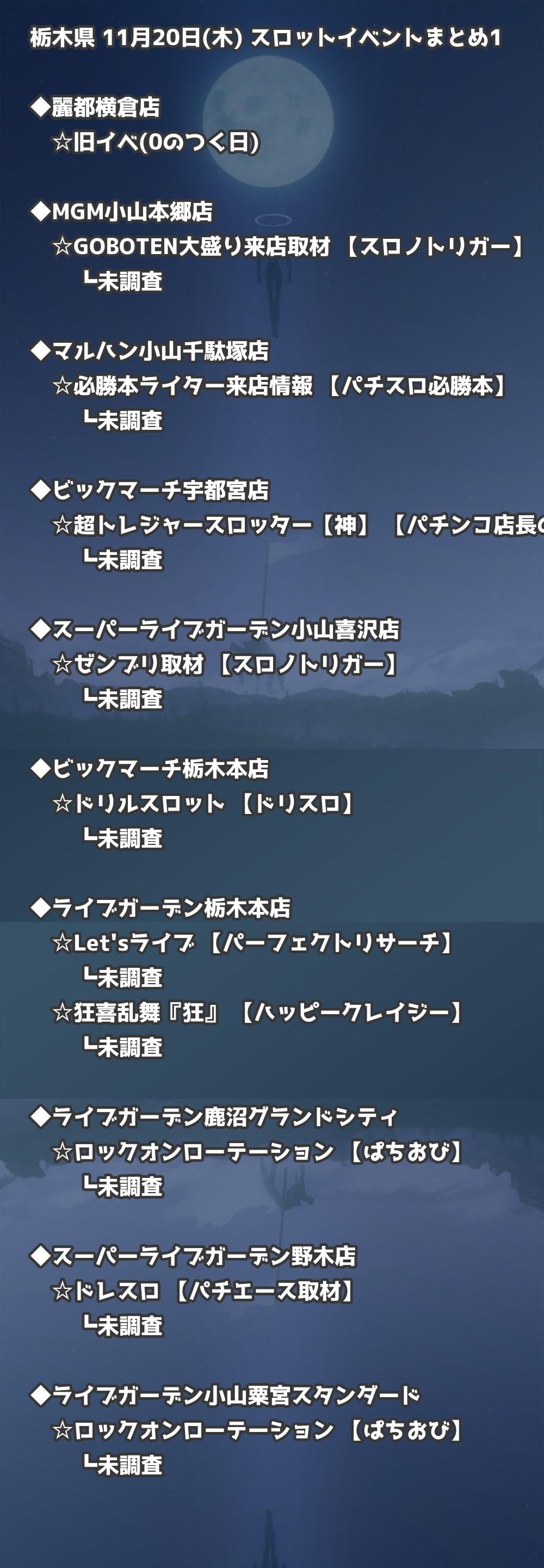 【栃木県】11月20日(木) パチンコホールイベント取材まとめ記事です。